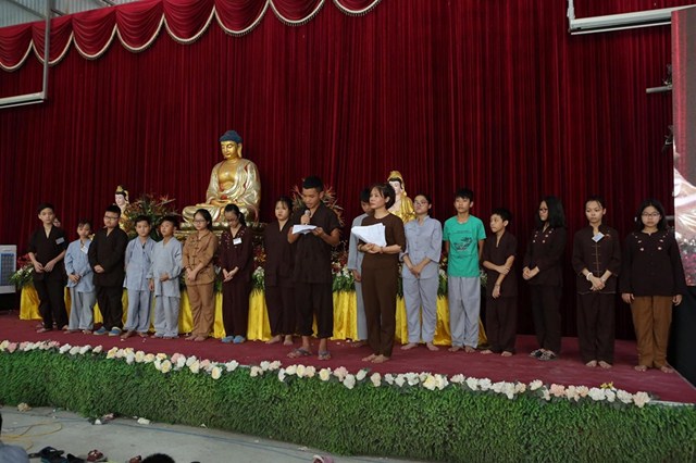 Đại diện cho 1.500 phụ huynh có con em mình tham dự khoá tu được ban tổ chức mời đến để các con làm lễ dâng trà, chén trà thảo thơm ân nghĩa, hiếu hạnh...