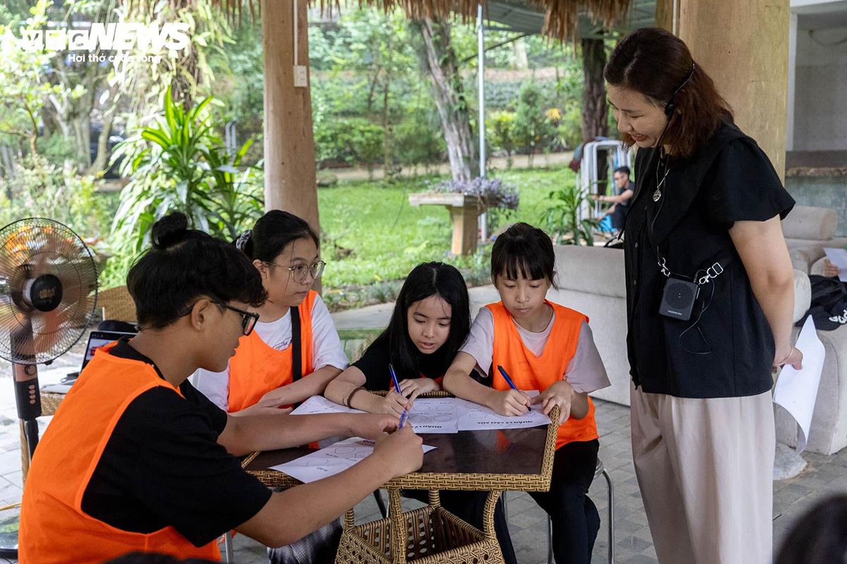| Anh Hà kể: “Mới bắt đầu trại hè, các em đều được giáo viên giữ hộ điện thoại, có em đang chơi với bạn được chút đã đến xin tôi cho mượn lại, có trẻ vì quá nhút nhát đến mức vào trại hè không biết nói gì. Các thầy cô đã giúp các em tìm được 3 người bạn, có buổi chia sẻ kỹ năng và làm việc nhóm, chỉ đến ngày thứ 2 các em dễ dàng hòa nhập cùng mọi người”. |