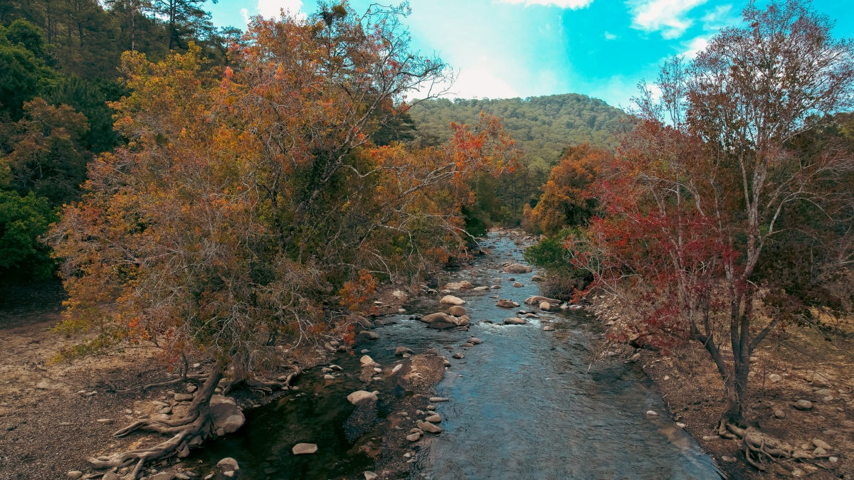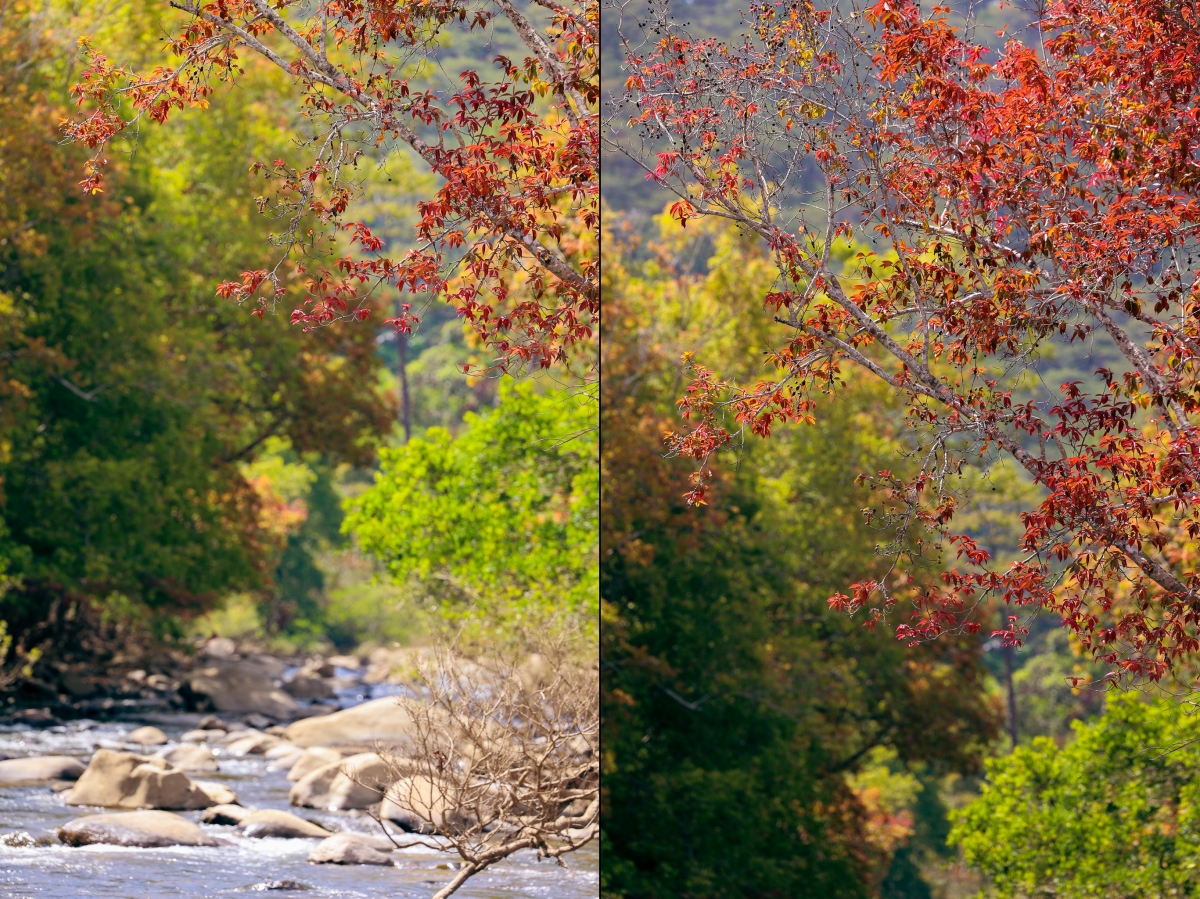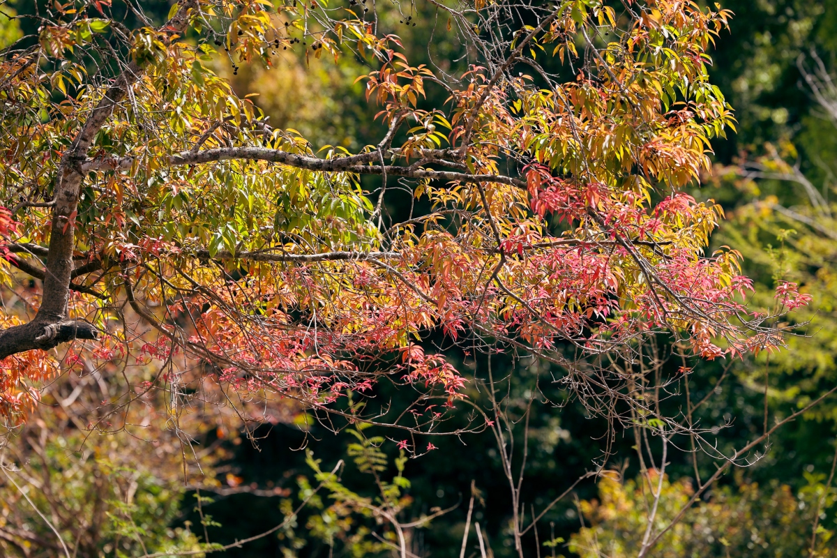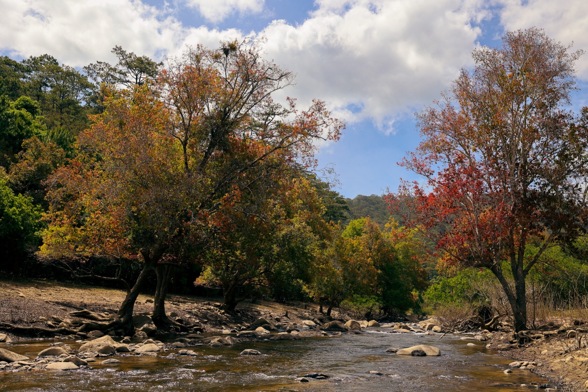 Mùa này ở Đa Mân, những hàng cây lá đỏ kết hợp với sông suối, núi rừng tạo nên phong cảnh đẹp nên thơ.