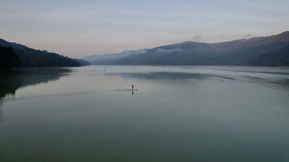 Có người lại chọn bơm ván SUP mang theo và thả nhẹ xuống mặt hồ, tận hưởng cảm giác trong lành giữa thiên nhiên.