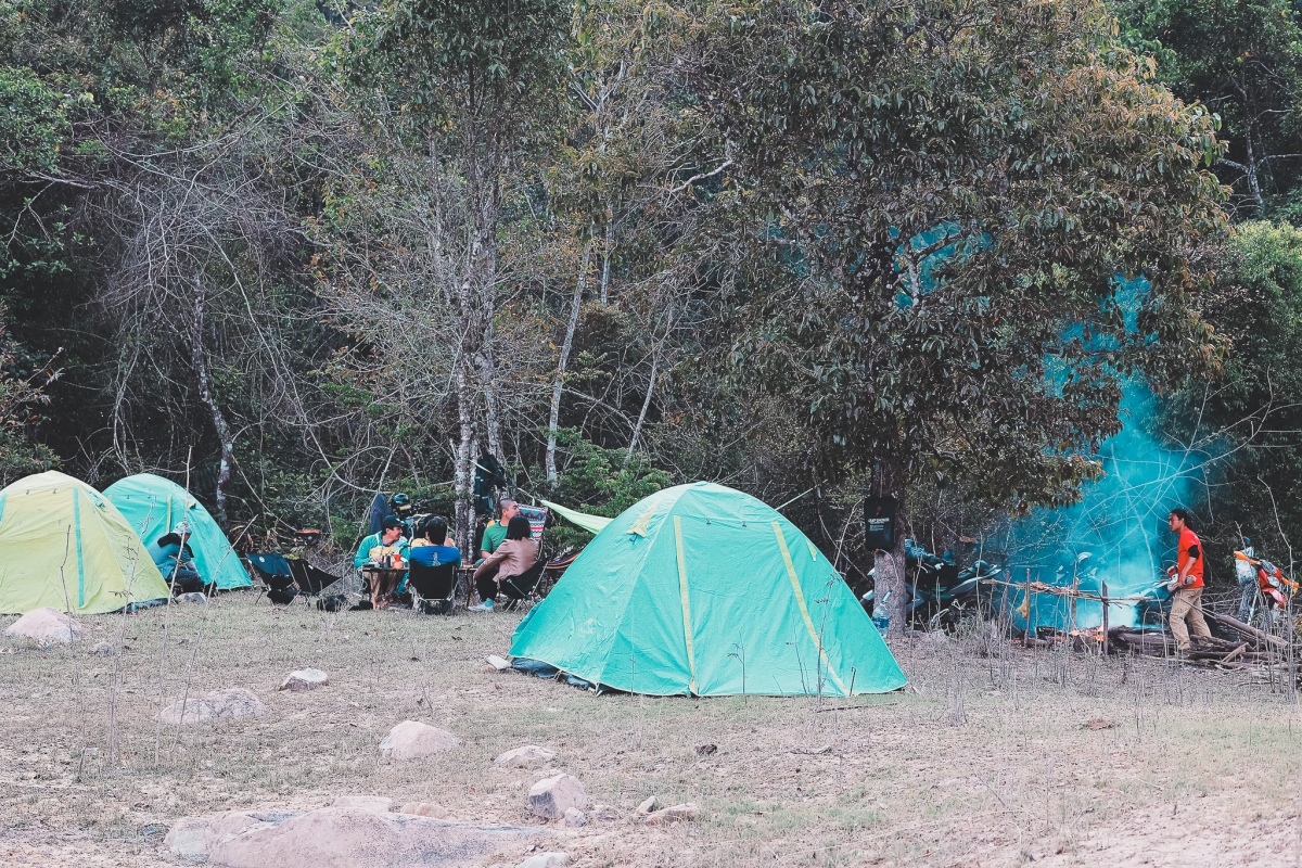 Du khách có thể chọn hạ trại cạnh một con suối nhỏ, là nơi có địa hình khá bằng phẳng nằm giữa mênh mang núi rừng.