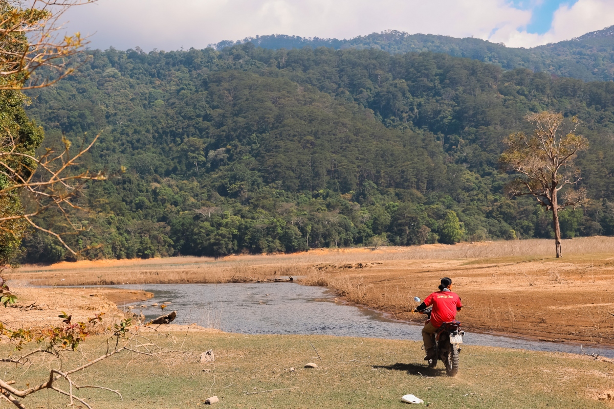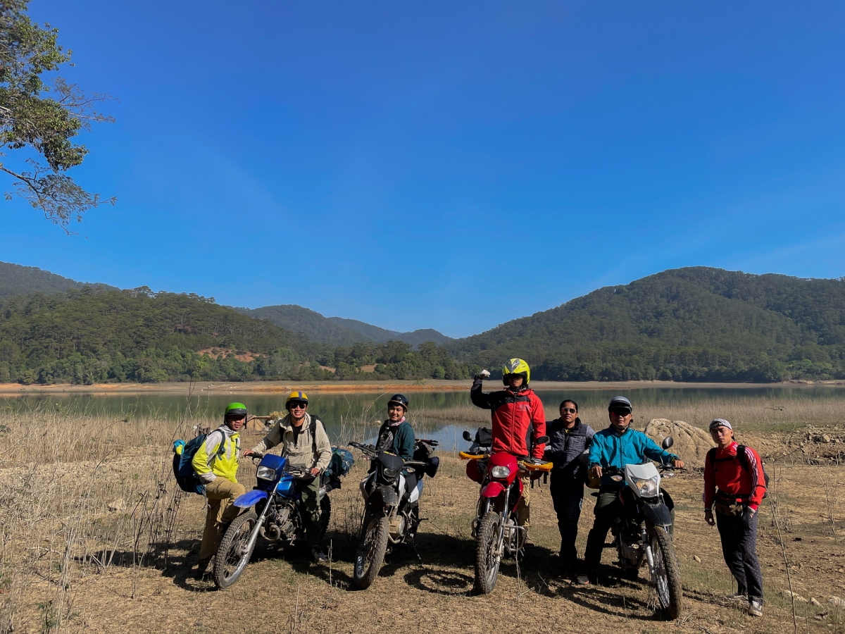 Blogger Vinh Gấu cho biết đoạn đường chạy vào khu rừng không thiếu những phong cảnh thơ mộng, dù sẽ phải di chuyển khá vất vả với những đoạn vượt suối, băng rừng.