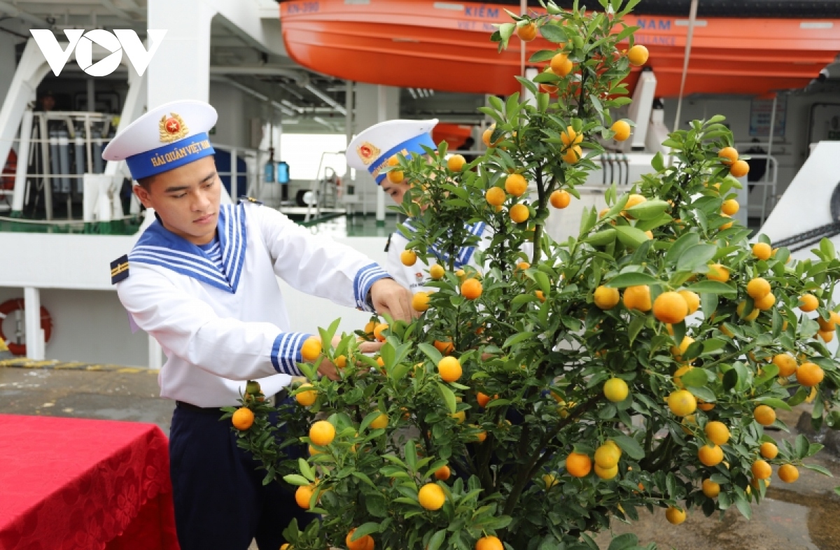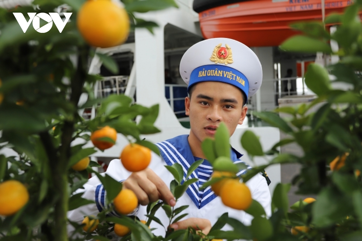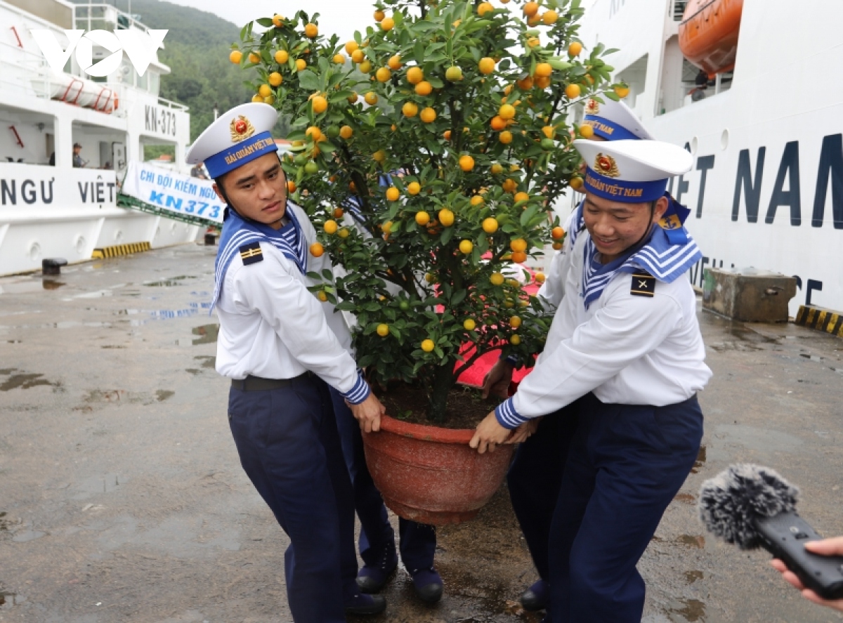 Đưa cây quất lên tàu kiểm ngư KN-390. |