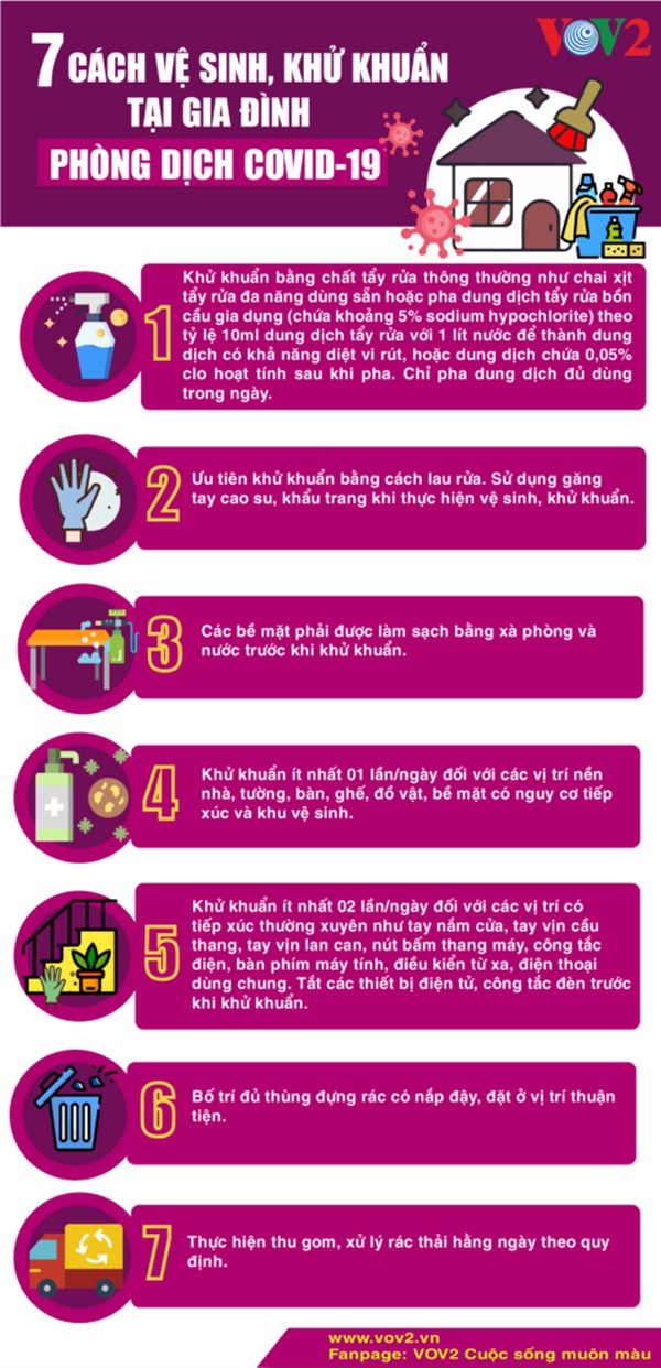 (VOV5) -Dịch Covid-19 ngày càng diễn biến phức tạp. Dưới đây là 7 cách vệ sinh, khử khuẩn tại gia đình phòng dịch Covid-19.