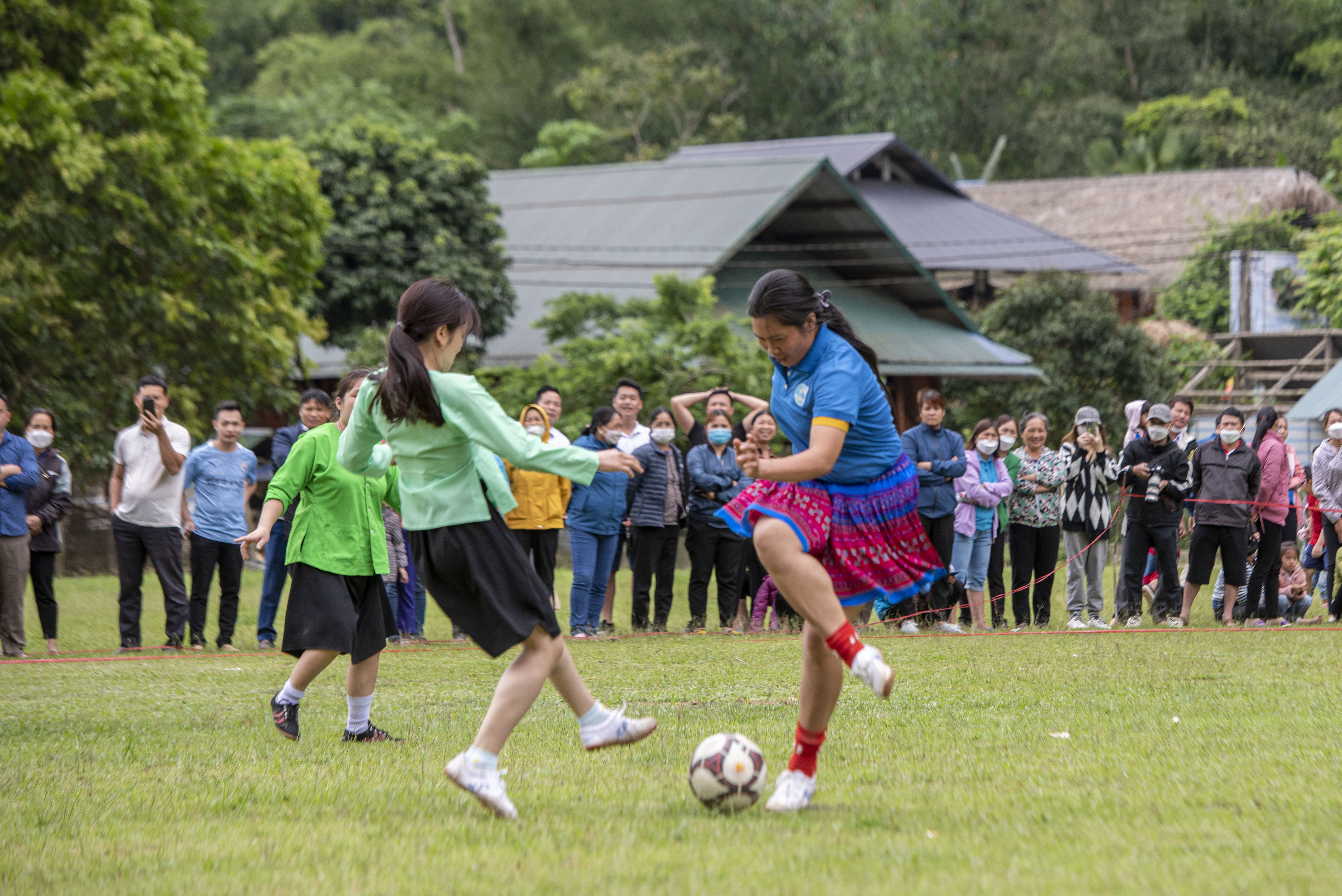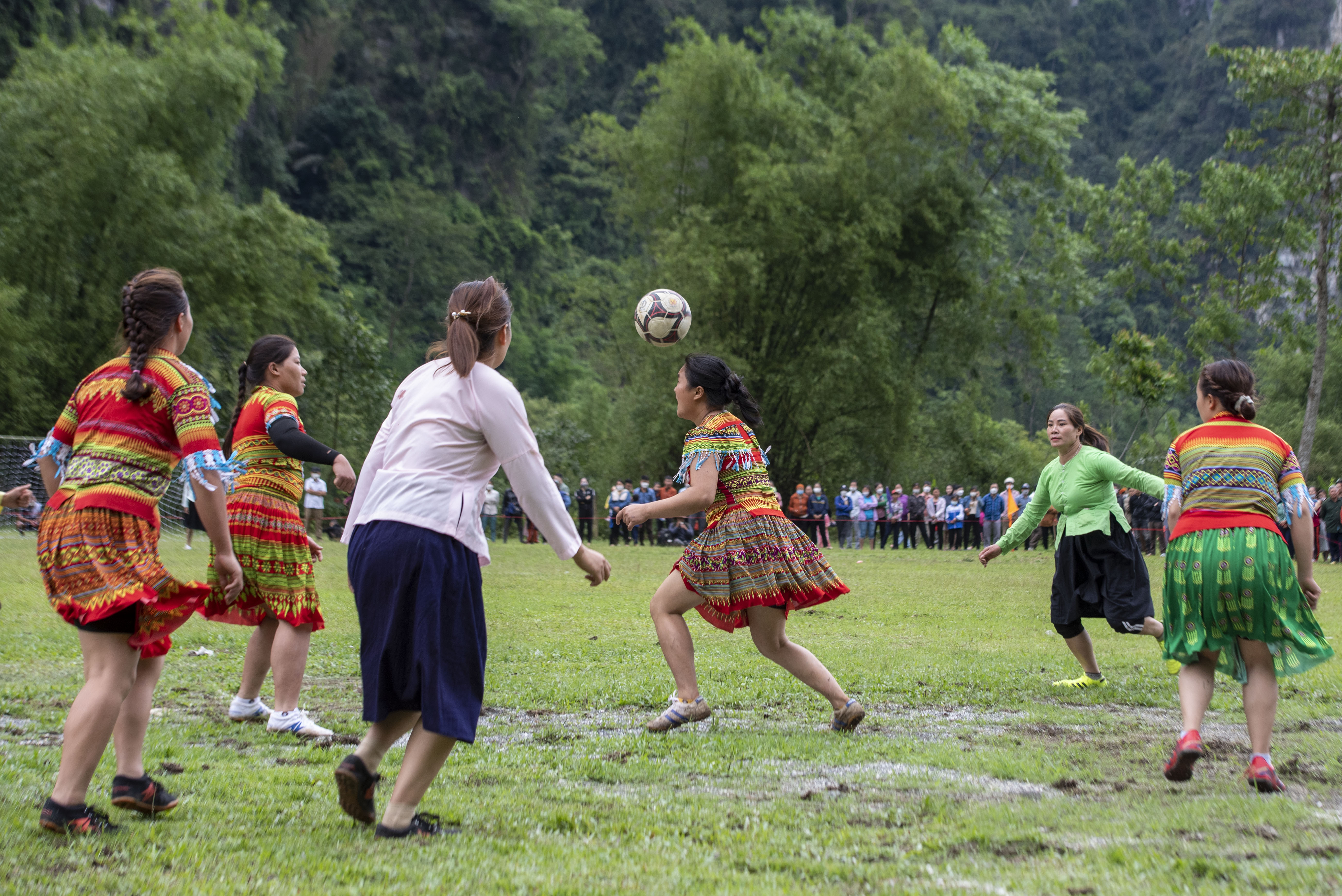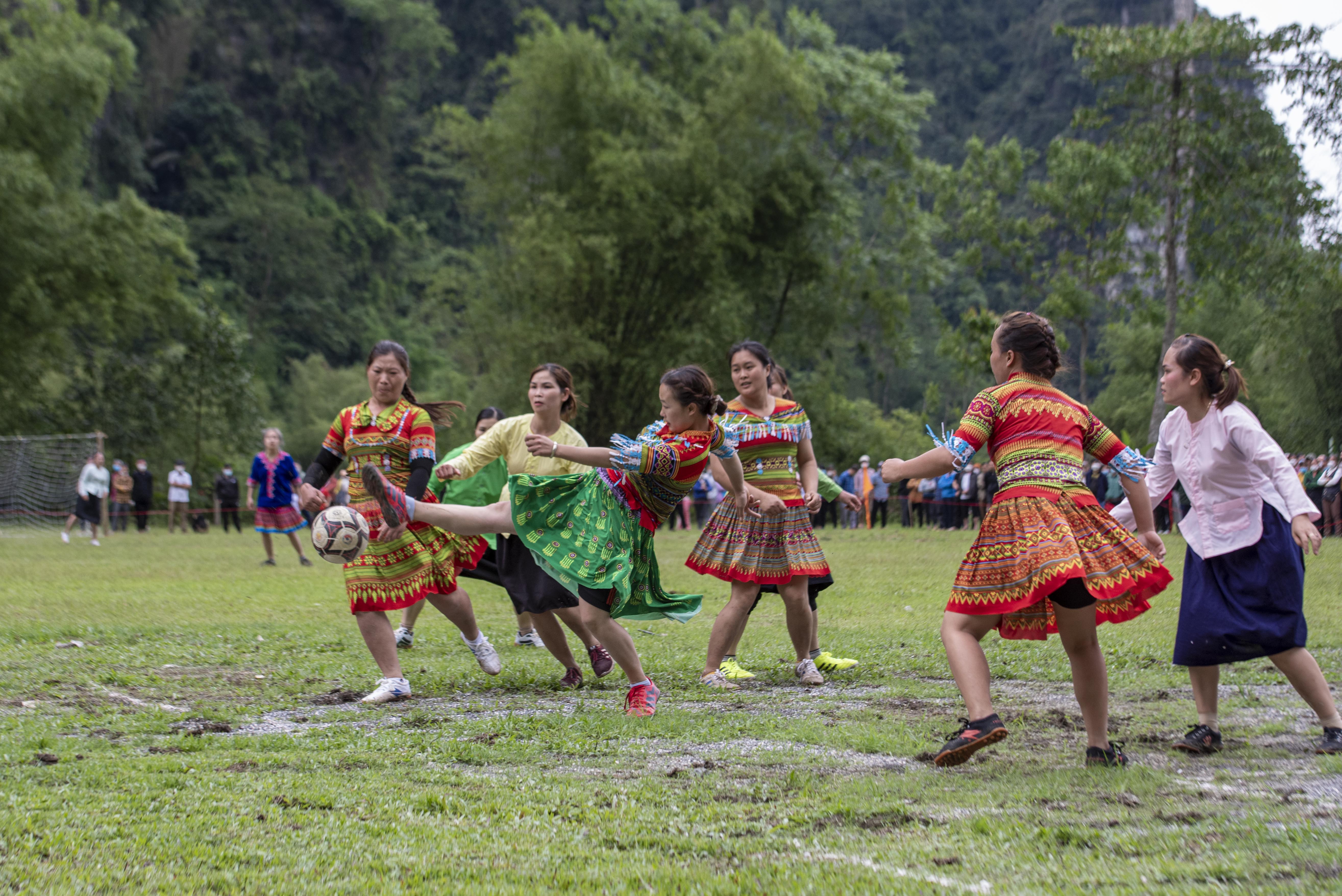 Từ những công việc hàng ngày bên khung dệt thổ cẩm, làm bánh trứng kiến, bánh dày hay đan mây tre… các cô thôn nữ bỗng trở thành những cầu thủ trong trang phục dân tộc đầy nữ tính song cũng tranh bóng quyết liệt, đánh đầu…chẳng kém các đấng mày râu. Không khí trên sân luôn sôi động từ sự cổ vũ nhiệt tình của du khách cùng bà con đia phương khiến một vùng non nước hữu tình trở nên sống động những ngày lễ hội.