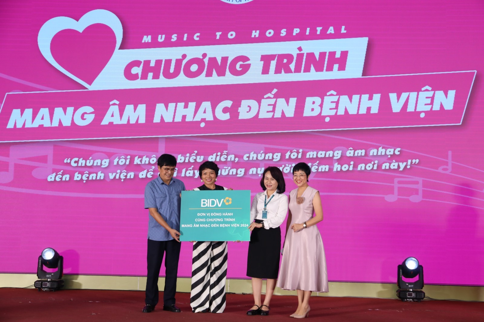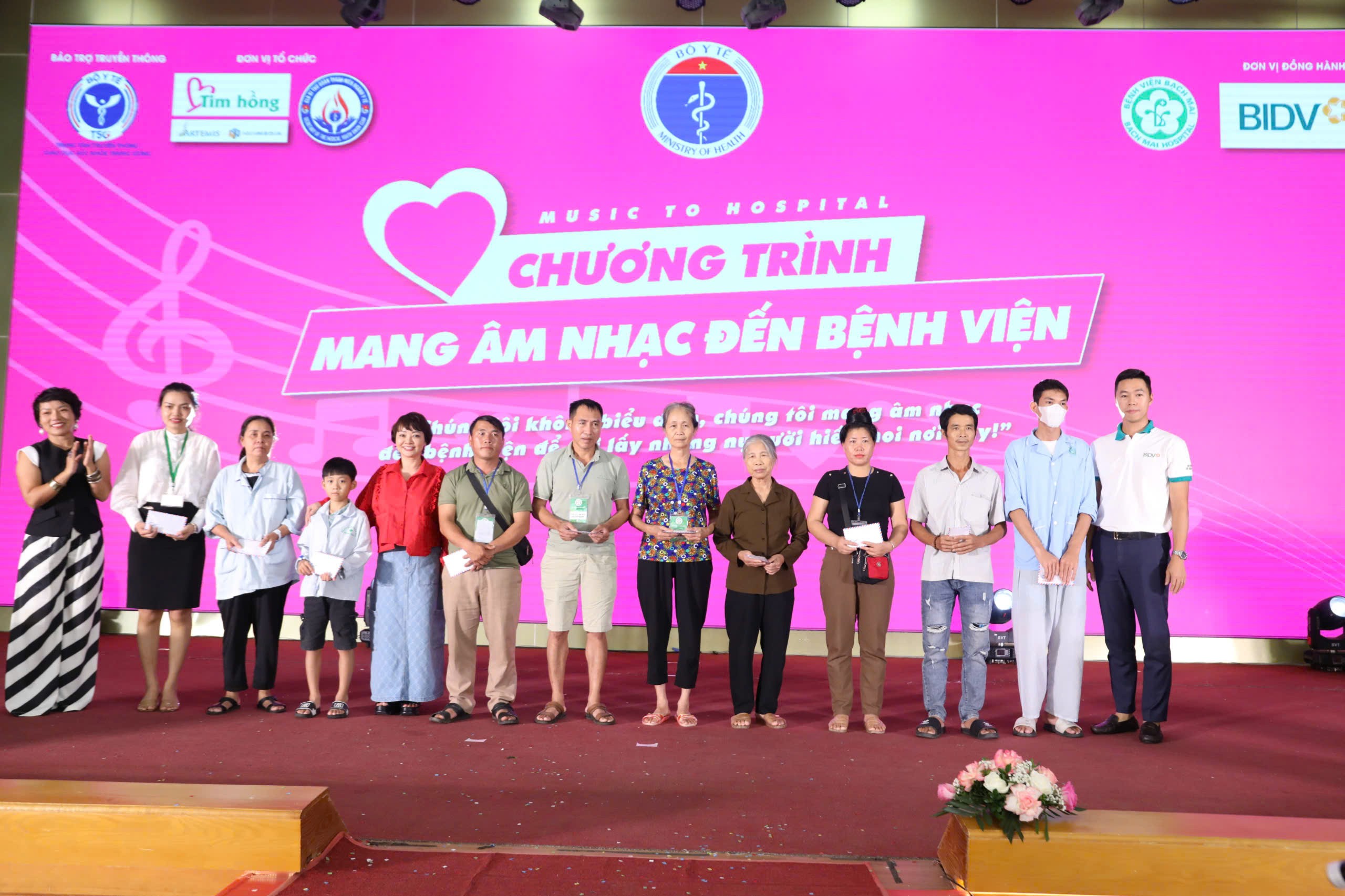“Mang âm nhạc đến bệnh viện” 2024 là chương trình âm nhạc thiện nguyện do Bộ Y Tế, Câu lạc bộ Bí thư Đoàn thanh niên ngành Y tế và nhóm tình nguyện Tim Hồng, Công ty TNHH Giải trí và Truyền thông Artemis (NSNmedia) phối hợp tổ chức với sự đồng hành của ngân hàng TMCP Đầu tư và Phát triển Việt Nam (BIDV)/.