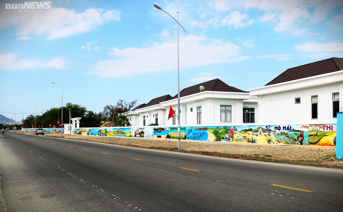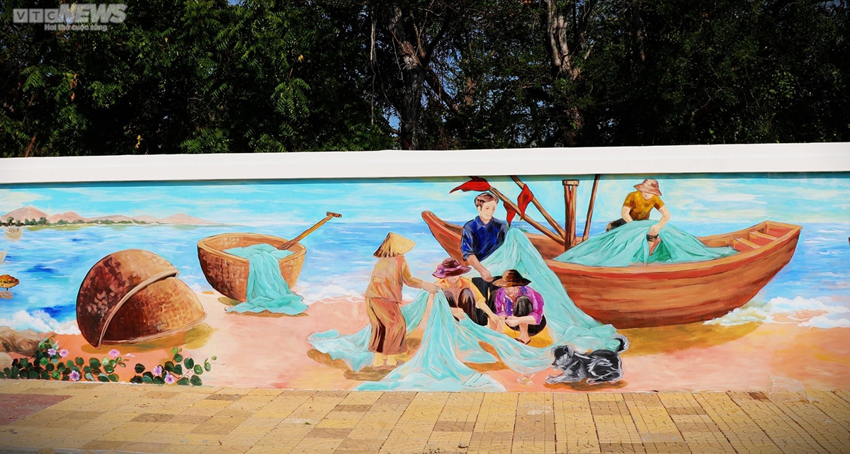 Bức tường tranh bích họa nằm trên tuyến đường 702, Khu Đầm Vua, xã Tri Hải, huyện Ninh Hải (Ninh Thuận) có tổng chiều dài khoảng 737m với chiều cao 1,5m. Ảnh: Ảnh: VTCNews |