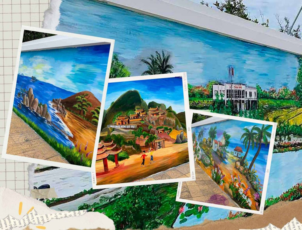 Bức tường tranh bích họa là thành phẩm của gần 100 người dân yêu hội họa trên địa bàn huyện. Ảnh: FB Ninh Thuận Ngày Mới |