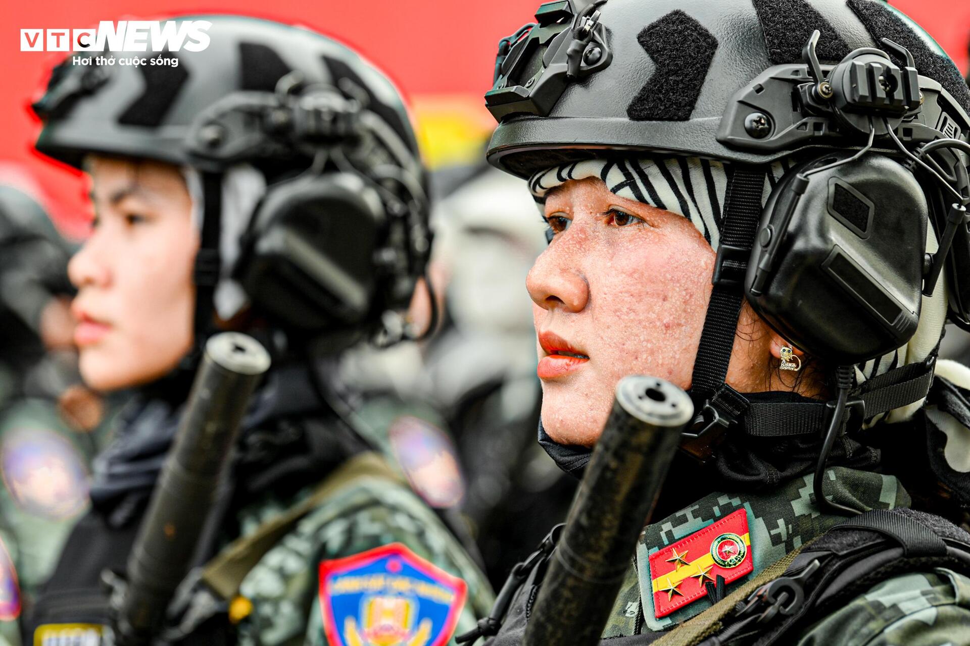 | Giữa hàng nghìn người bền bỉ bước đều dưới nắng hè gay gắt, các nữ chiến sĩ cảnh sát đặc nhiệm nổi bật với vóc dáng gọn gàng, tác phong dứt khoát, ánh mắt kiên định và kỷ luật nghiêm túc. |