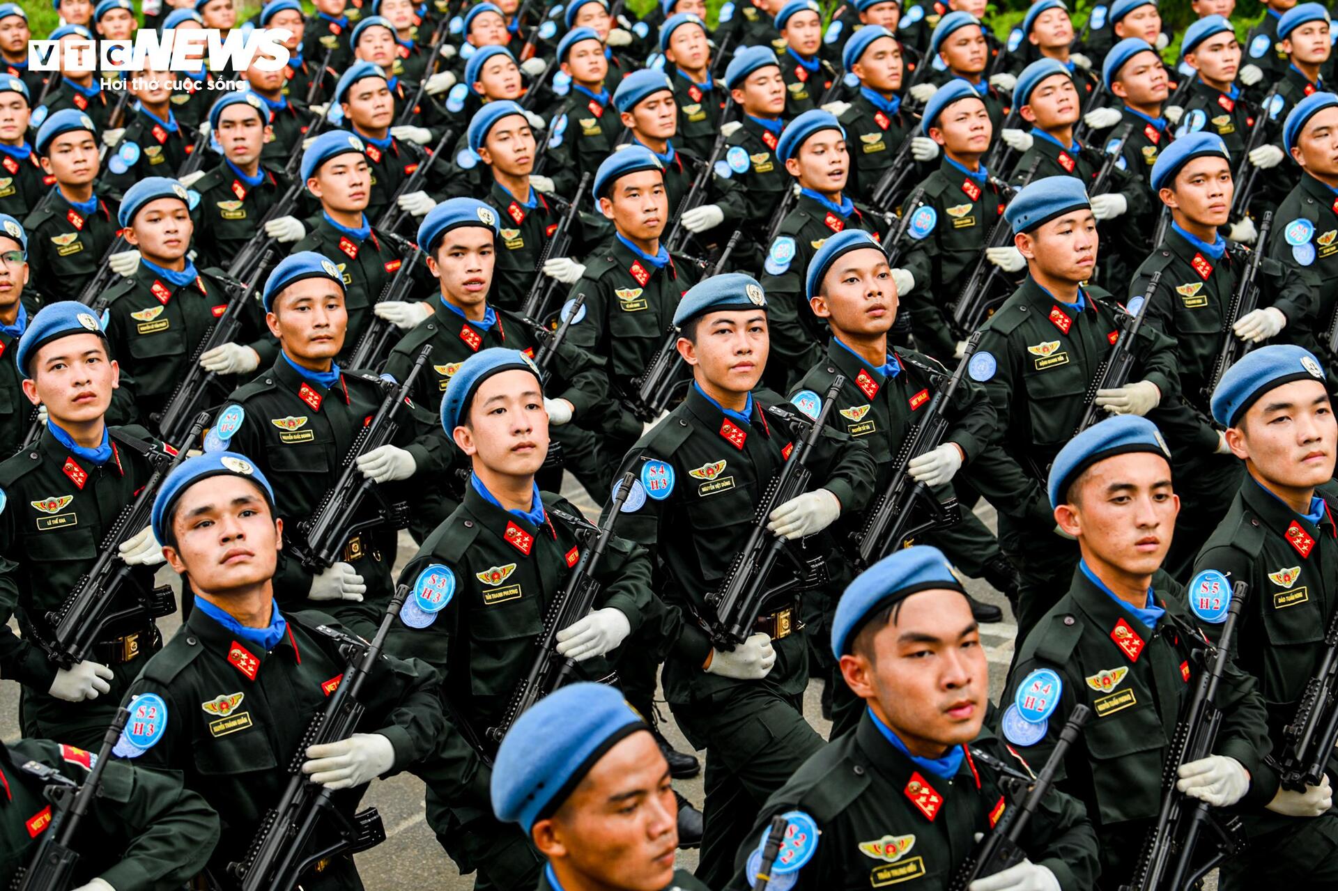 | Không chỉ các nữ chiến sĩ đặc nhiệm, tại Hòa Lạc, các khối khác cũng đang gấp rút hoàn thiện từng động tác, từng bước diễu hành. Trong ảnh là khối nam sĩ quan Cảnh sát gìn giữ hòa bình Liên Hợp Quốc. |