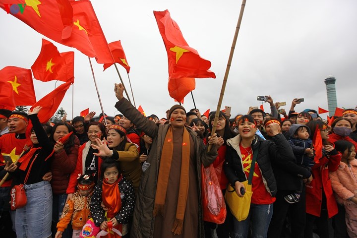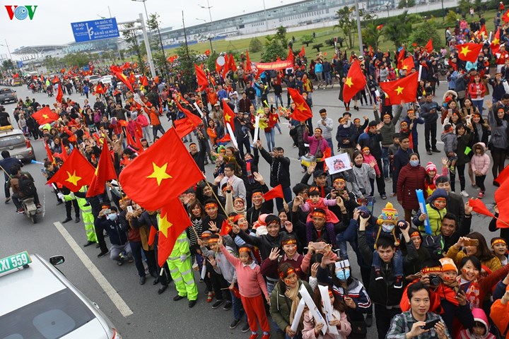 | Hàng vạn người hâm mộ đã túc trực ở trước cửa VIP A sân bay Nội Bài để chào đón những người hùng U23 Việt Nam. (Ảnh: Trọng Phú) |