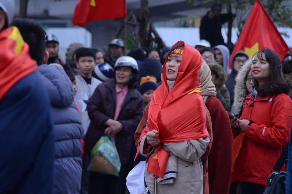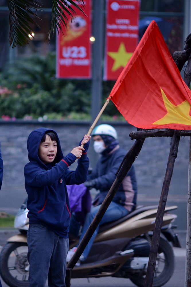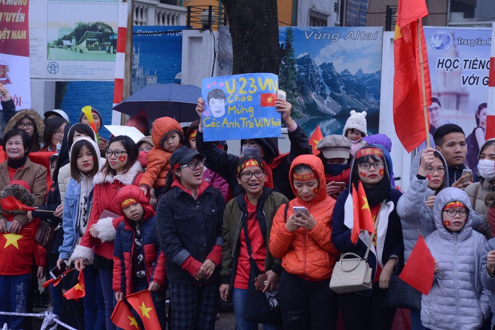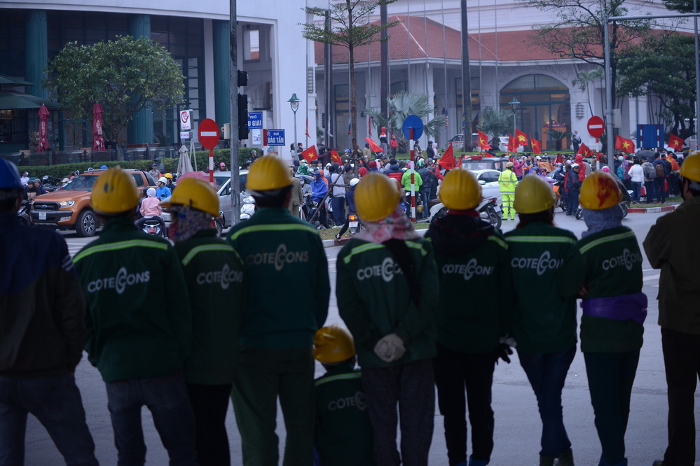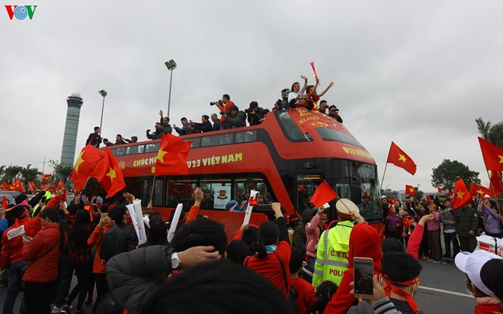 | Những người hâm mộ trông ngóng giây phút chuyến xe chở các cầu thủ U23.(ảnh: Đức Anh/VOV5) |