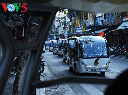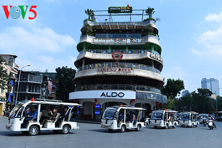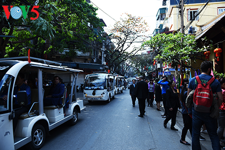 Cùng với đi bộ du xuân, các đại sứ di chuyển trên phố cổ bằng phương tiện xe điện.