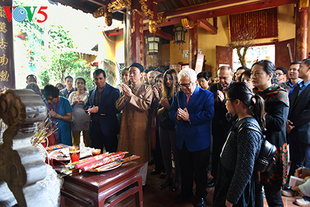 Đại sứ Phạm Sanh Châu và các nhà ngoại giao nước ngoài dâng hương tại đền Bạch Mã