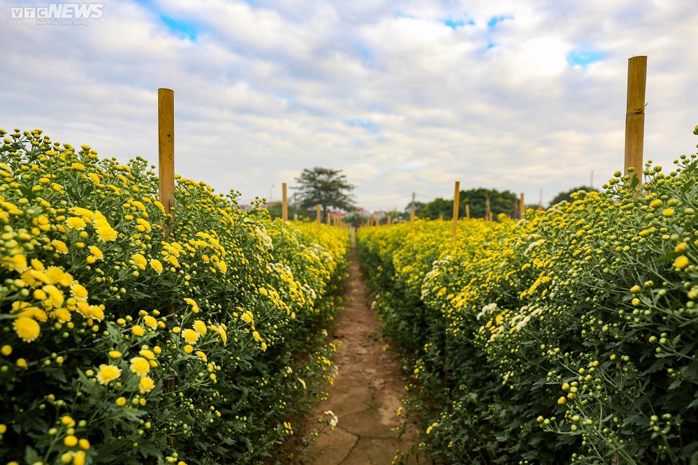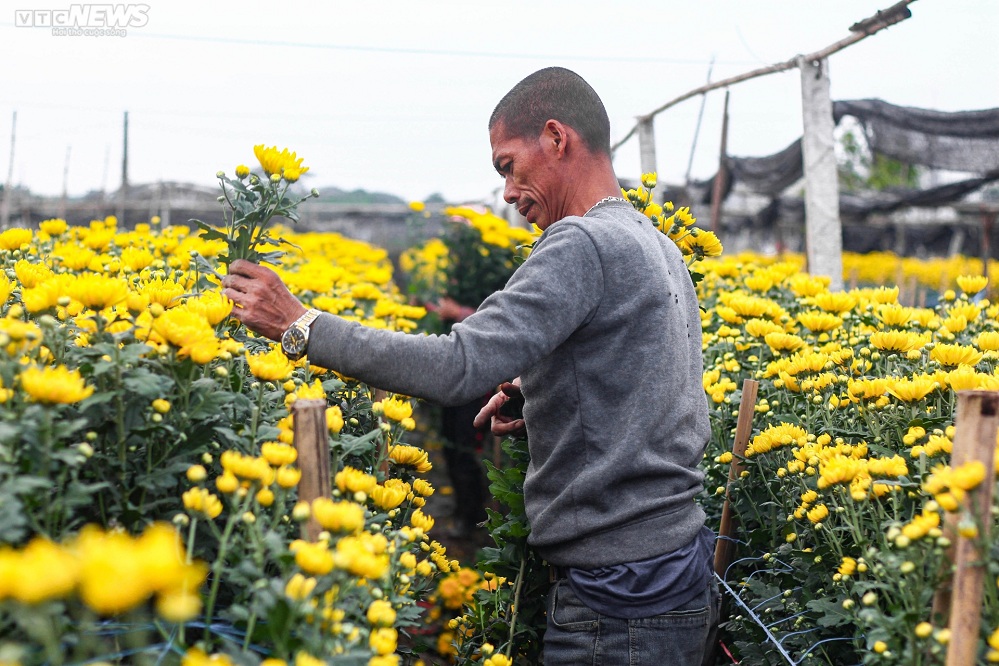Nhiều chủ vườn ở Tây Tựu đang hối hả cắt những bông hoa cúc nở sớm đưa ra thị trường. Ảnh: vtc