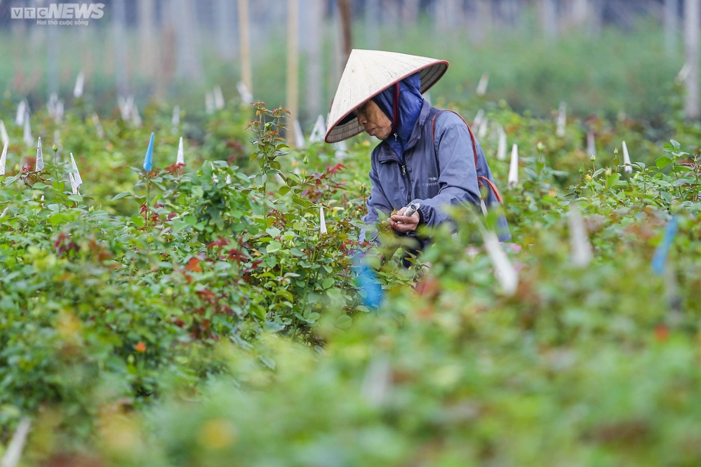 Những ngày này, người nông dân ở làng hoa Tây Tựu (quận Bắc Từ Liêm, Hà Nội) hối hả chăm sóc cây để chuẩn bị cho mùa thu hoạch hoa lớn nhất trong năm. Ảnh: vtc