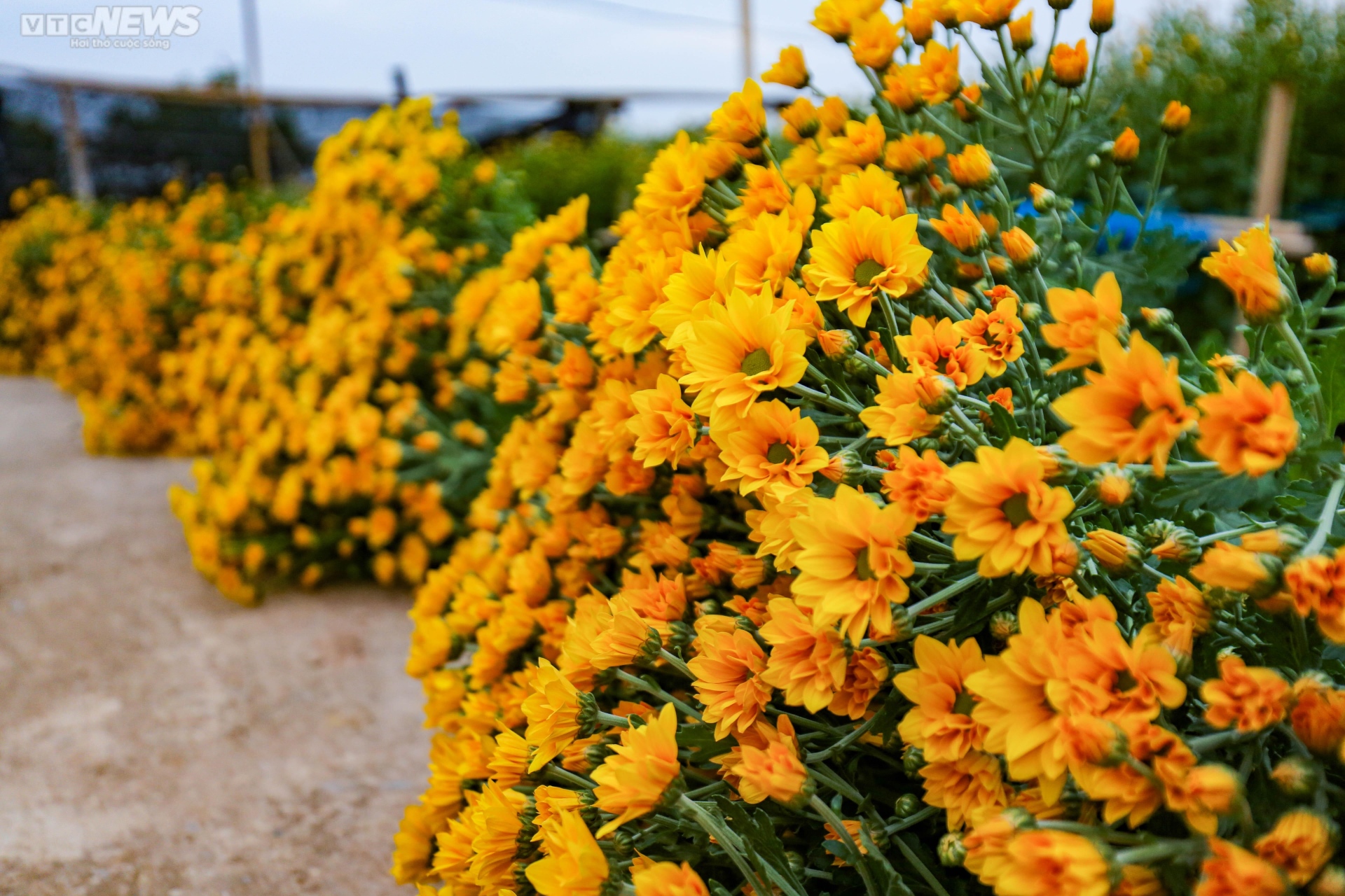 Hoa cúc được chất thành đống chờ tiểu thương đến nhập hàng. Ảnh: vtc