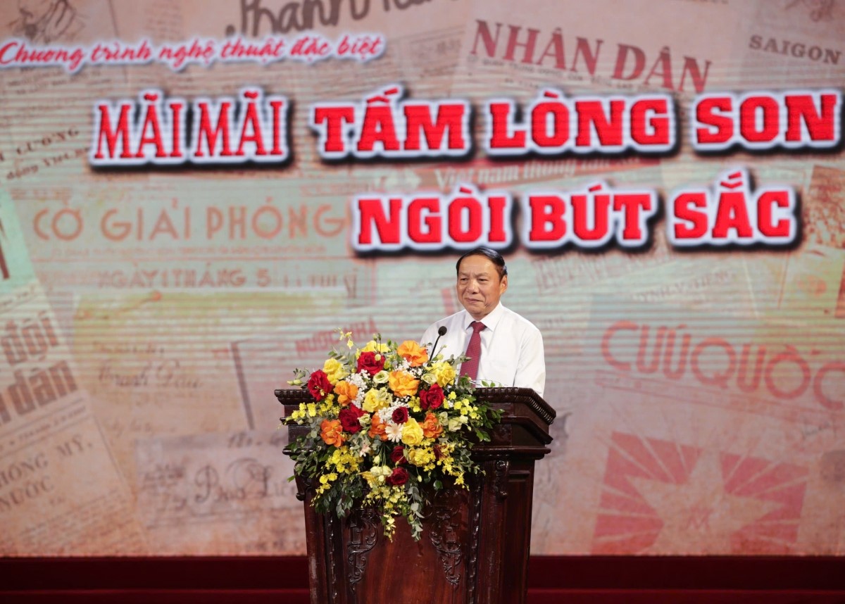 Phát biểu tại chương trình, Bộ trưởng Bộ Văn hóa, Thể thao và Du lịch Nguyễn Văn Hùng nhấn mạnh vai trò tiên phong của báo chí với phương châm: “Đi trước mở đường – Đi cùng thực hiện – Đi sau tổng kết”. Ông gọi mốc son 100 năm không chỉ là dấu mốc kỷ niệm mà còn là điểm tựa vững chắc để báo chí tiếp bước một hành trình mới “sâu sắc hơn, sáng tạo hơn và đầy cảm hứng hơn, theo hướng chuyên nghiệp hơn, hiện đại hơn, nhân văn hơn và cống hiến hơn”. Ảnh: Tuấn Minh/Ban tổ chức cung cấp |