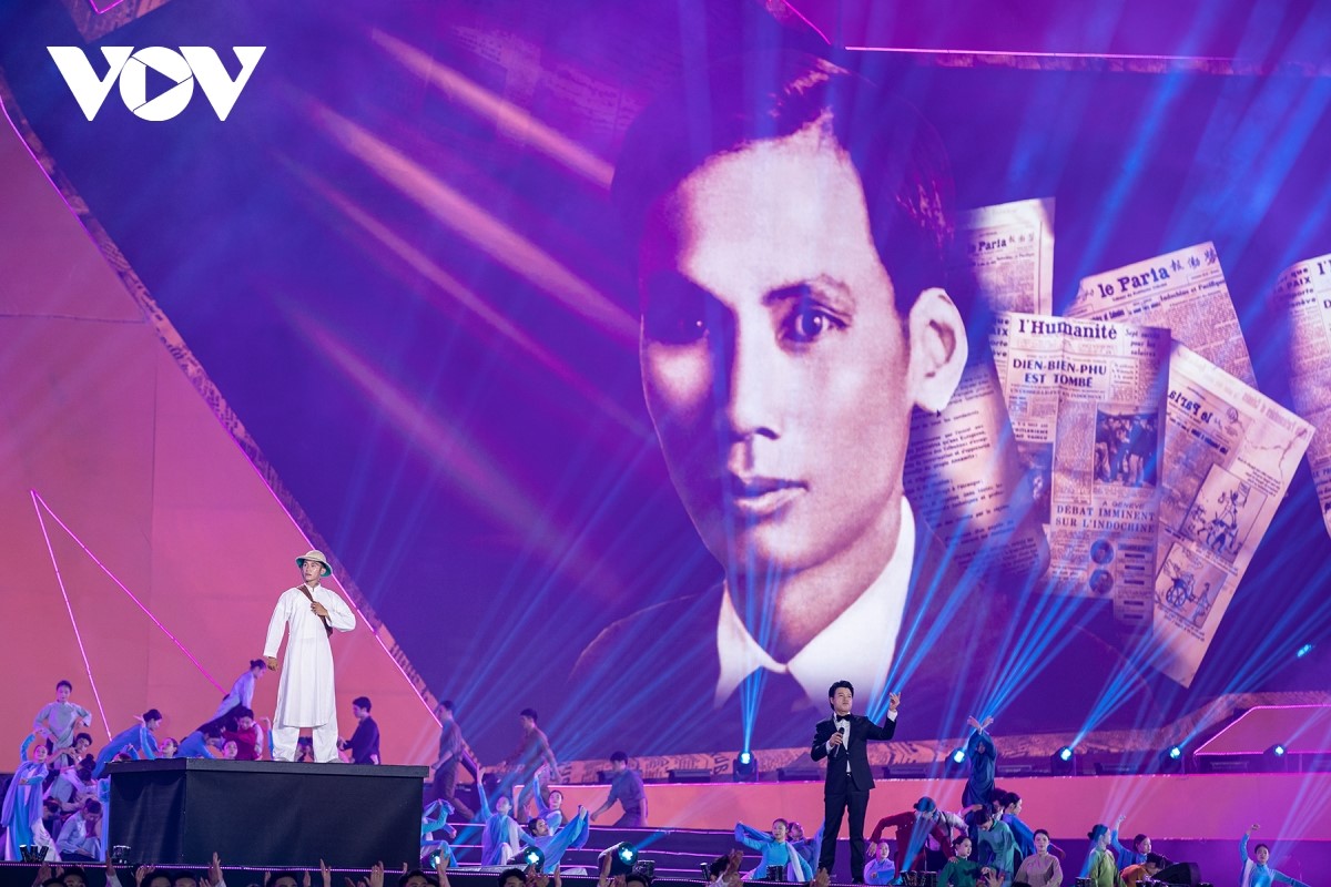 Phát biểu khai mạc, Bộ trưởng Bộ Văn hóa, Thể thao và Du lịch Nguyễn Văn Hùng nhấn mạnh: “80 năm qua, văn hóa nghệ thuật đã song hành cùng dân tộc, tạo mạch nguồn nuôi dưỡng tâm hồn, sức mạnh, tinh thần và ý chí Việt Nam. Chương trình nghệ thuật đặc biệt này không chỉ trình diễn các tác phẩm âm nhạc, múa, thơ ca, mà còn là lời tri ân sâu sắc gửi tới các thế hệ cha anh đã hy sinh cho độc lập, tự do của Tổ quốc”. |