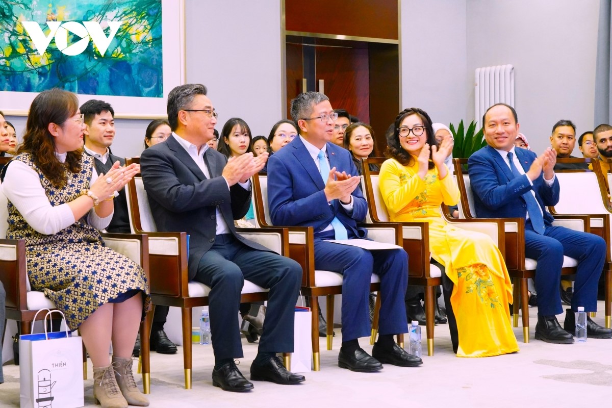Đại sứ Phạm Thanh Bình chia sẻ, điện ảnh là một “đại sứ văn hoá” sống động, có thể truyền tải chân thực, sâu sắc về đất nước, con người của mỗi quốc gia. Thông qua bộ phim, khán giả Trung Quốc và bạn bè quốc tế sẽ được trải nghiệm những khung cảnh thiên nhiên tươi đẹp, cuộc sống bình dị và những nét văn hoá đặc trưng của người Việt Nam. Qua đó, vun đắp hơn nữa tình cảm và sự hữu nghị giữa Việt Nam và các nước. Ảnh: PV/VOV-Bắc Kinh |