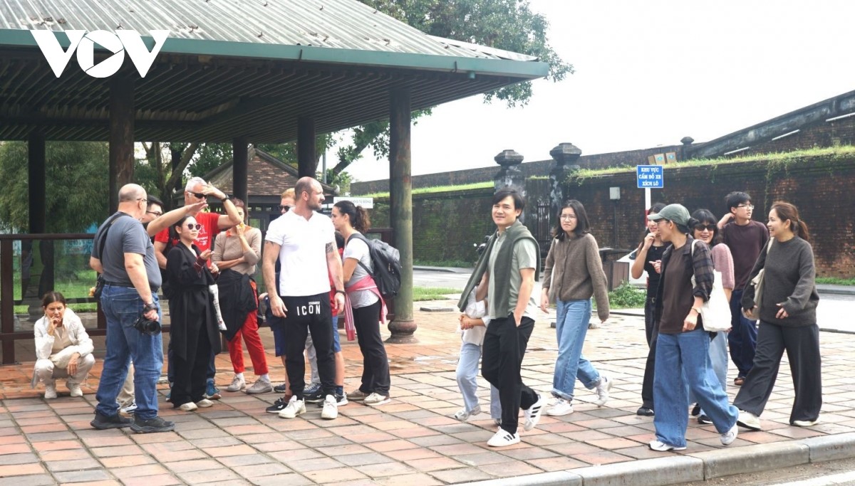 Các hoạt động được tổ chức với chủ đề “Mừng đất nước đổi mới, mừng Đảng quang vinh, mừng Xuân Bính Ngọ”. Điểm nhấn là các chương trình nghệ thuật chào năm mới và đón giao thừa tại khu vực sân khấu trước trường Quốc học Huế và quảng trường Ngọ Môn vào tối 16/2/2026. Khách du lịch tham quan Huế. Ảnh: Lê Hiếu/VOV-Miền Trung |