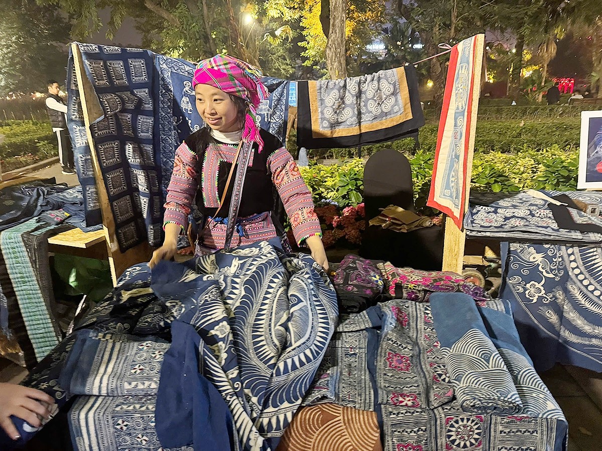 Chị Hàng Y Na, dân tộc Mông hạnh phúc khi được giới thiệu sản phẩm truyền thống đến du khách trong và ngoài nước. Ảnh: Thủy Tiên/VOV |
