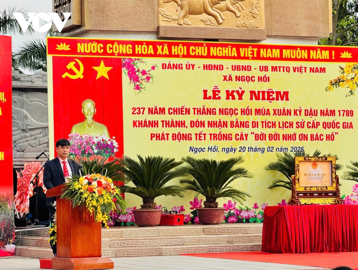 Ngày 20/2/2026 (mùng 4 Tết Bính Ngọ), Ủy ban nhân dân (UBND) xã Ngọc Hồi (Hà Nội) tổ chức Lễ kỷ niệm 237 năm Chiến thắng Ngọc Hồi mùa Xuân Kỷ Dậu (1789) và khánh thành, đón nhận bằng xếp hạng Di tích quốc gia tại Di tích địa điểm chiến thắng Ngọc Hồi mùa Xuân năm Kỷ Dậu (1789).