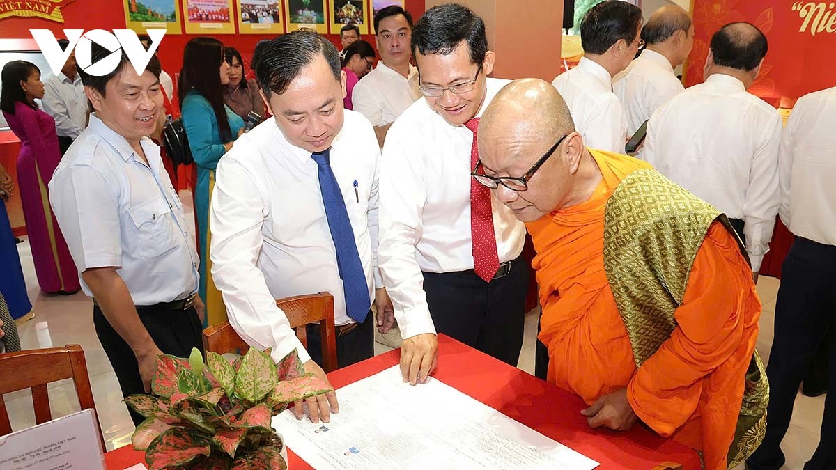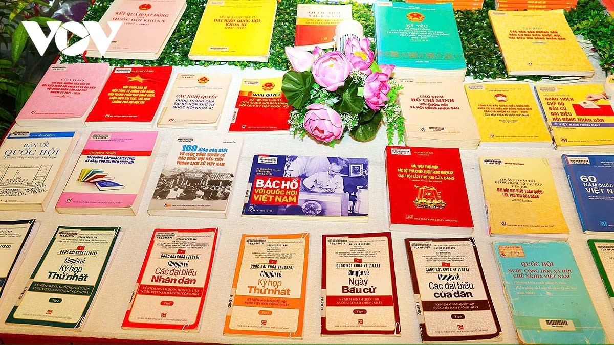 Song song với trưng bày chuyên đề là triển lãm sách với chủ đề: “Niềm tin, đoàn kết và khát vọng”, giới thiệu 300 bản sách, báo và tài liệu về Chủ tịch Hồ Chí Minh với các kỳ bầu cử đại biểu Quốc hội; các tài liệu về bầu cử Đại biểu Quốc hội và HĐND các cấp; Tài liệu hướng dẫn tuyên truyền bầu cử đại biểu Quốc hội khóa XVI và bầu cử đại biểu HĐND các cấp nhiệm kỳ 2026 – 2031. Ảnh: CTV Phạm Trung/VOV-ĐBSCL |