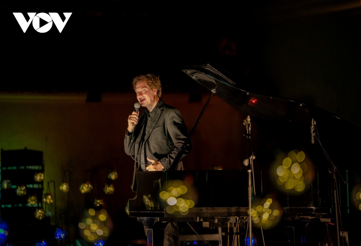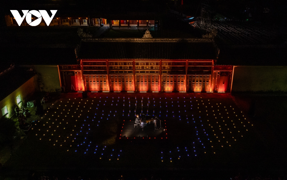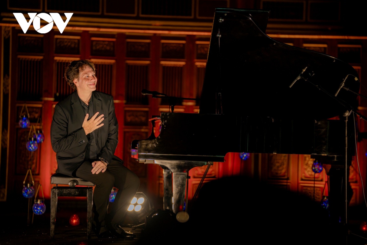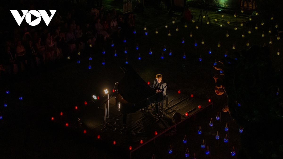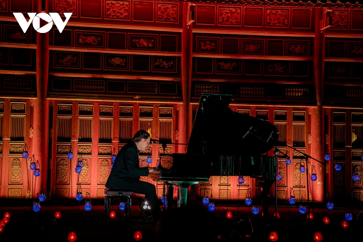 Tối 11/6, trong không gian lung linh, kỳ ảo của hàng trăm chiếc đèn thủy tinh chiếu sáng vườn Thiệu Phương, Đại Nội Huế, Nhà soạn nhạc, nghệ sĩ piano từng đoạt nhiều giải thưởng Steve Barakatt đã có buổi công diễn đầu tiên tại Việt Nam trong chuyến lưu diễn vòng quanh thế giới “Néoréalité”. (Ảnh Ngọc Quý)