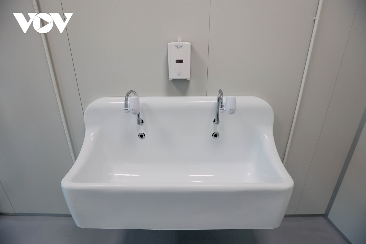 Ngoài ra, bệnh viện còn có khu đệm gồm 69 nhà tắm khử khuẩn và nhiều không gian xanh. |