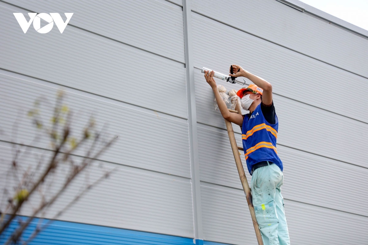 Công nhân hoàn thiện những công đoạn cuối cùng để bàn giao công trình. |