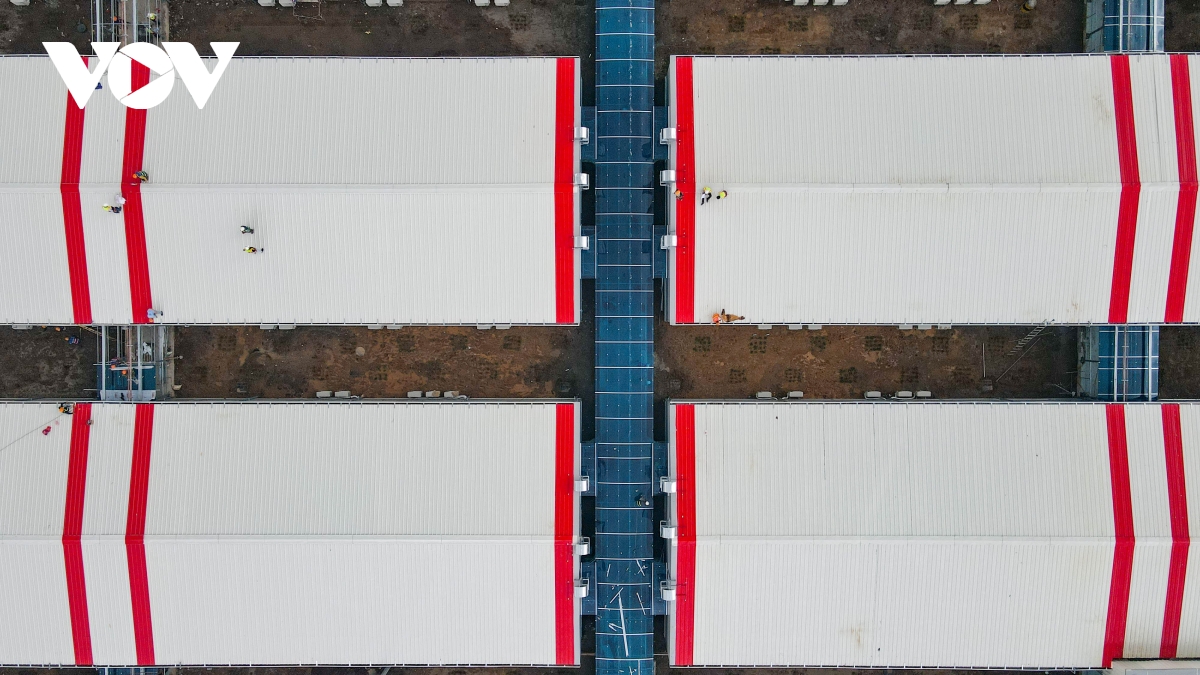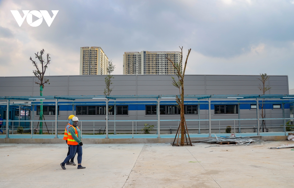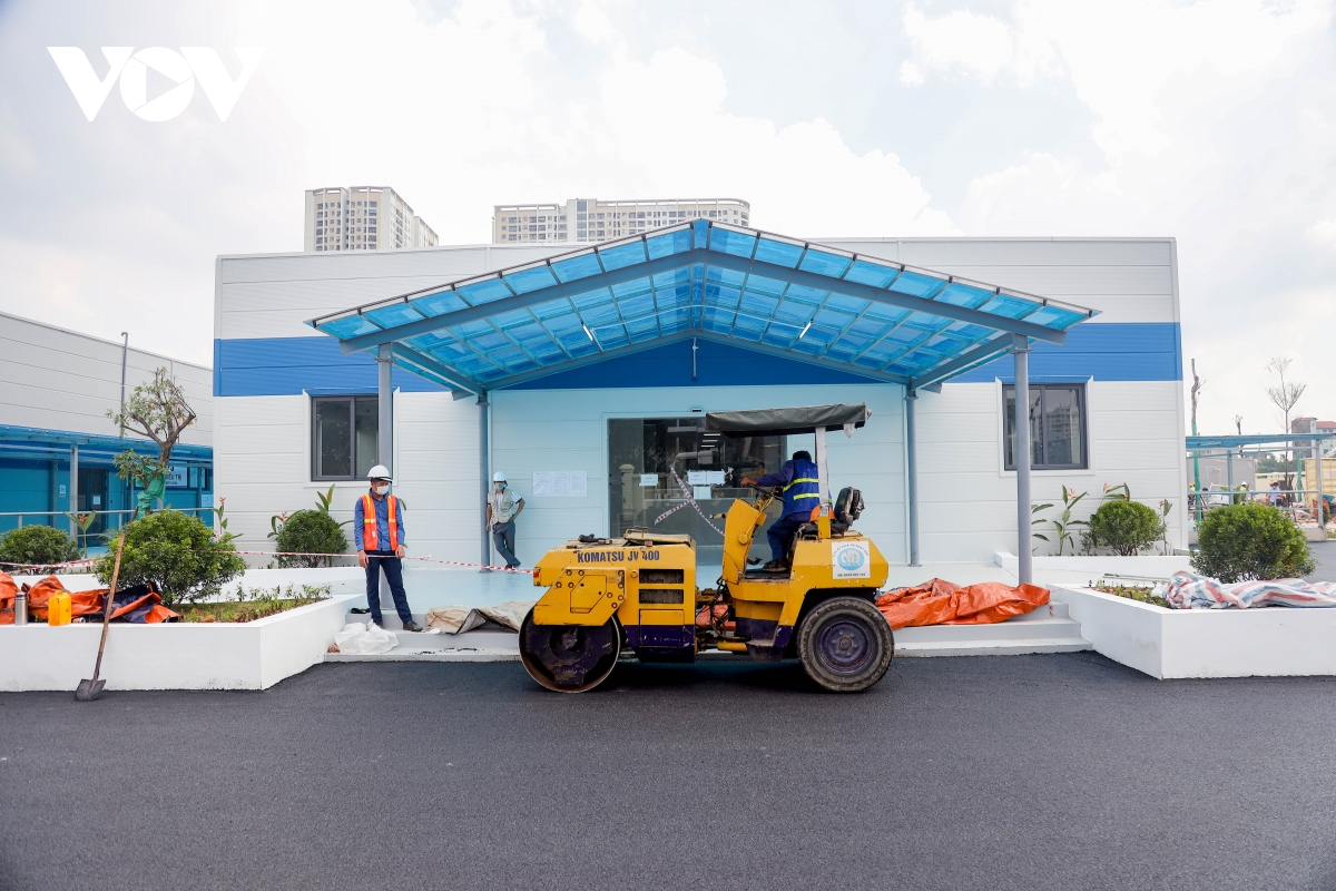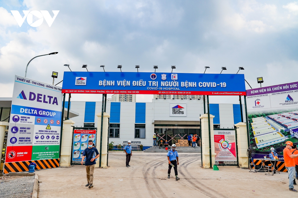 Bệnh viện dã chiến quy mô lớn này đặt tại ngõ 587 Tam Trinh (quận Hoàng Mai, TP Hà Nội), bắt đầu xây dựng từ ngày 24/7. |