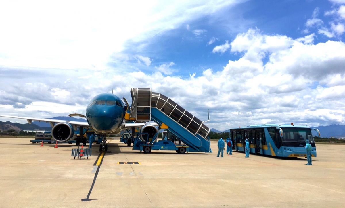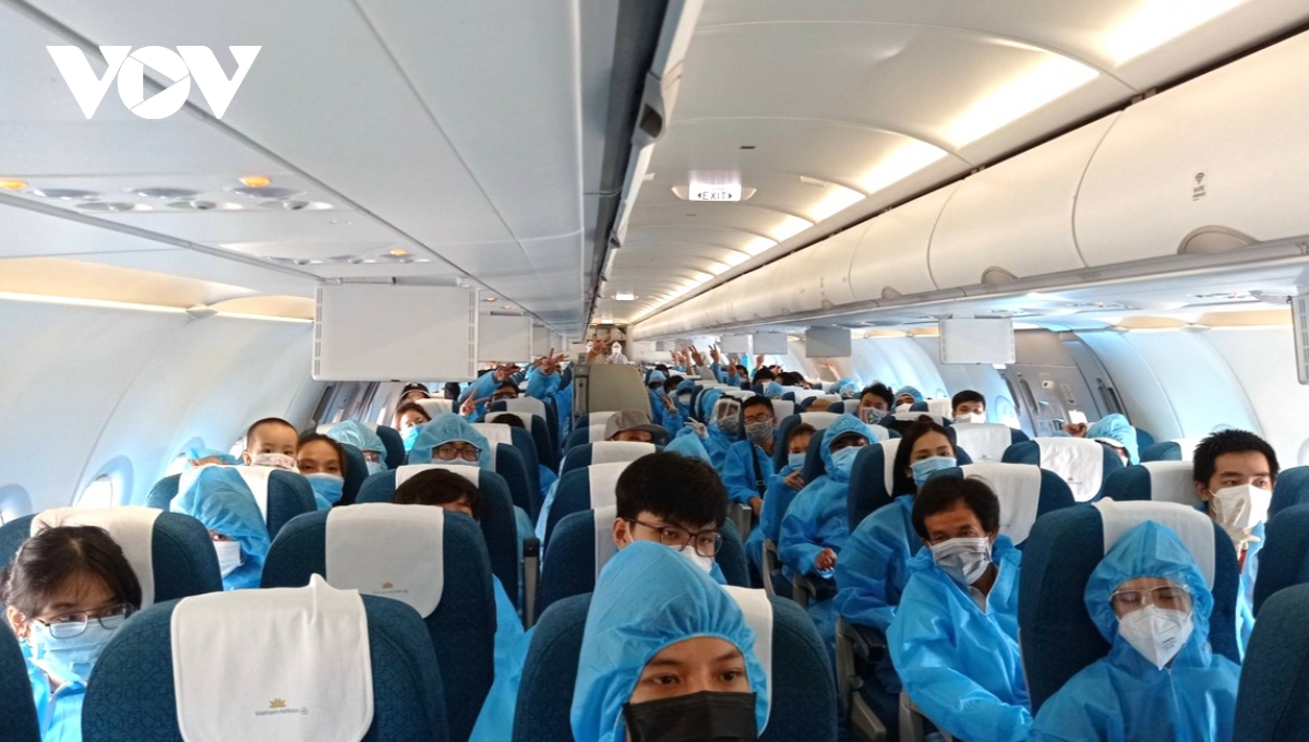 Công dân Đà Nẵng trên chuyến bay từ thành phố Hồ Chí Minh về quê. |