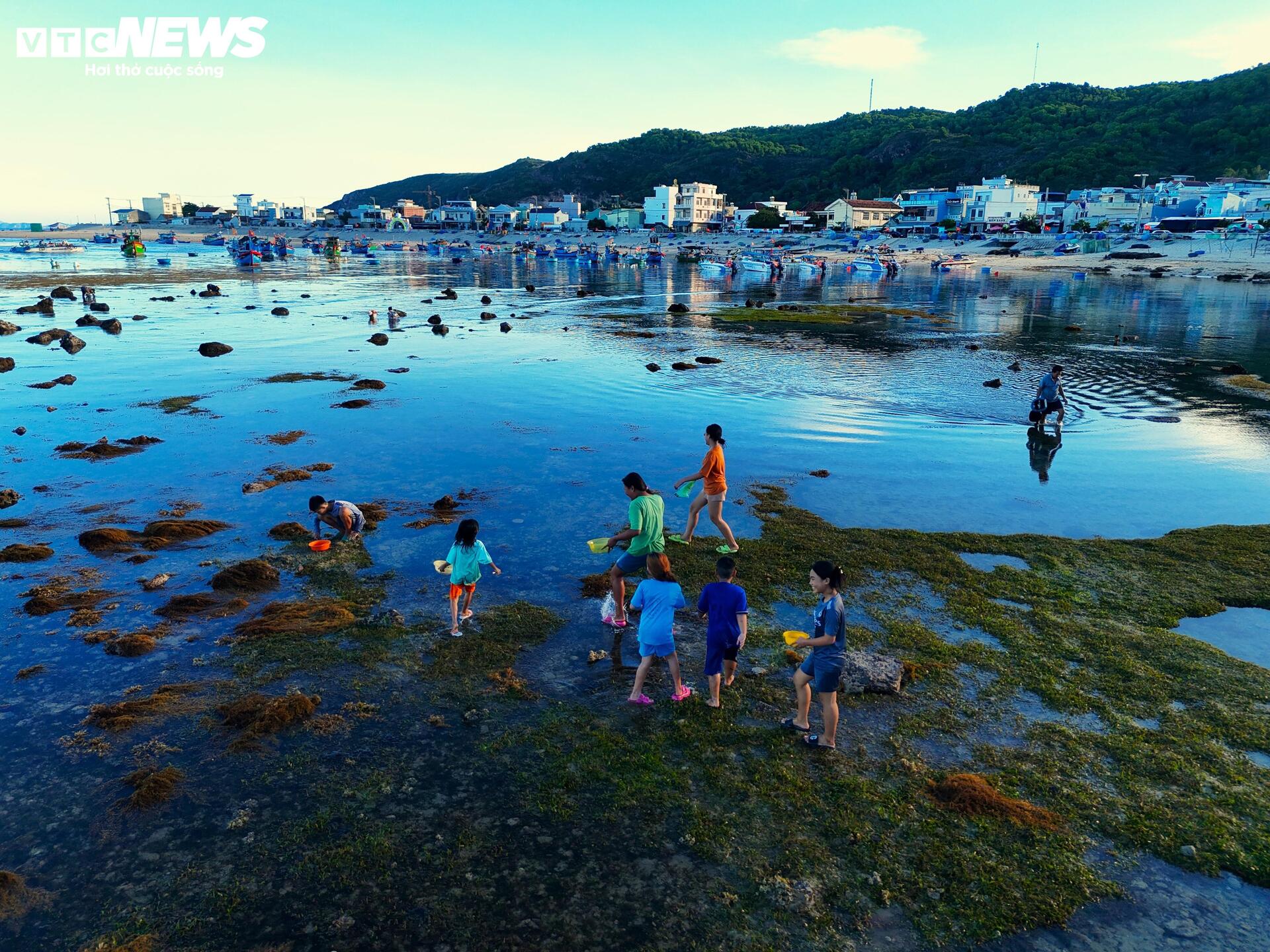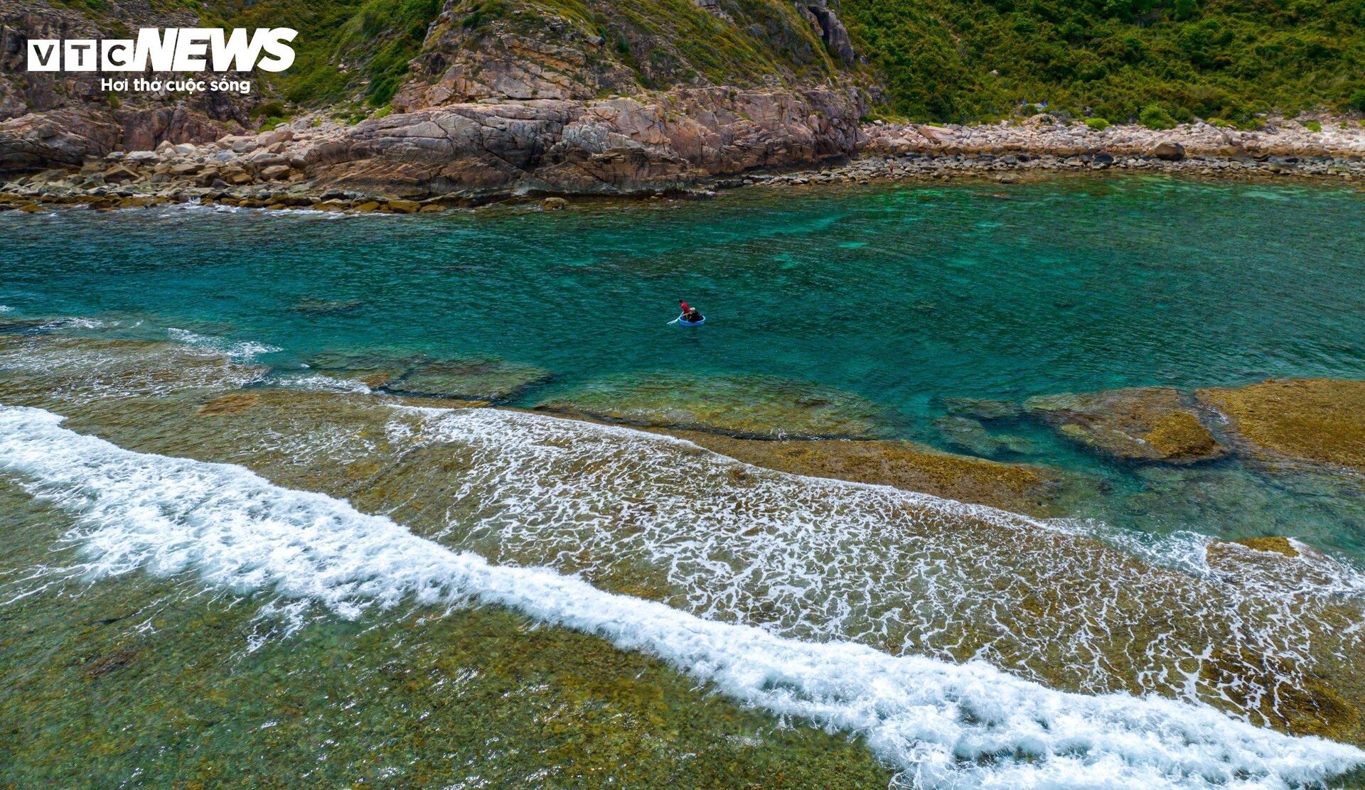 | Những ngày thủy triều rút, du khách có thể men theo bức tường đá, tiến gần hơn đến Hòn Khô, ngắm nhìn những rạn san hô đầy màu sắc ẩn hiện dưới làn nước trong veo. Con đường phủ lớp rêu khá dày nhưng lạ ở chỗ khi bước chân đi không hề trơn trượt chút nào, có cảm giác êm, mềm như nhung. |