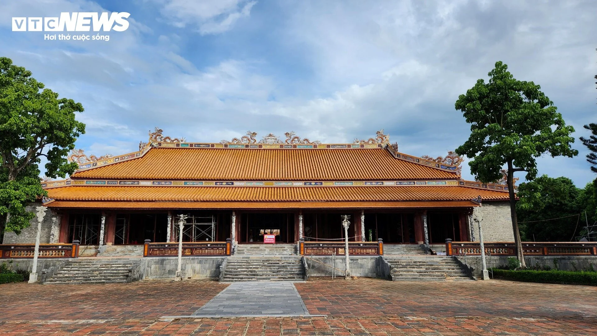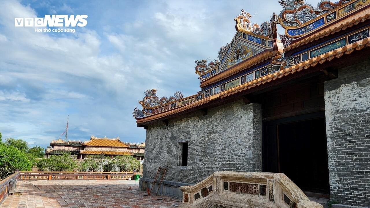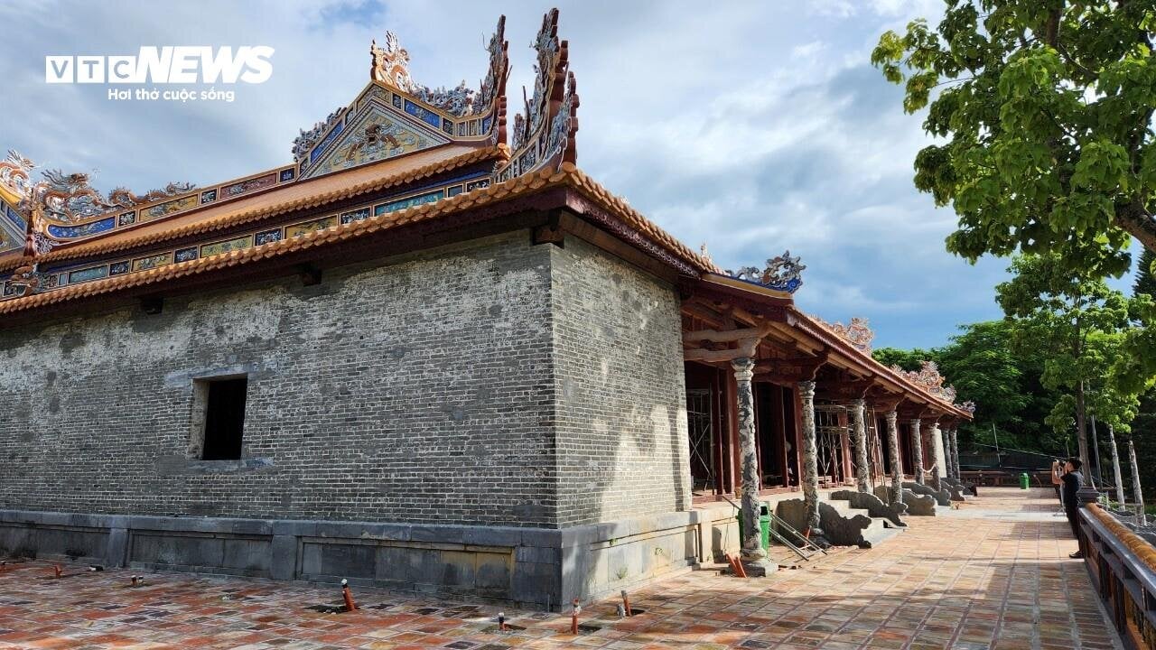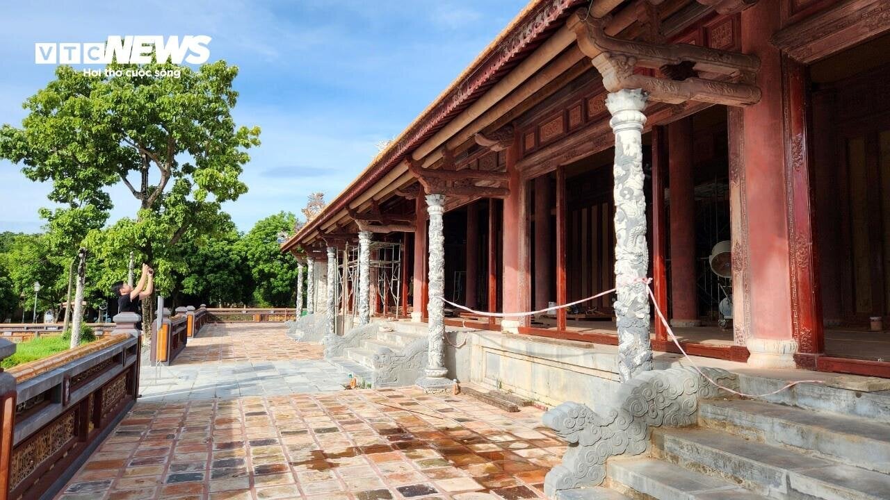 | Sau gần 3 năm trùng tu đến nay, những hạng mục chính của điện Thái Hoà dần lộ diện. Ảnh: ND. |