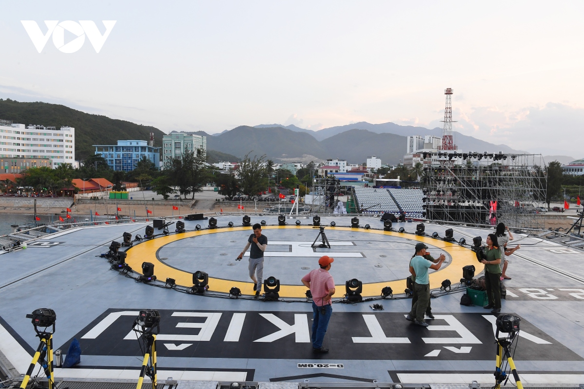 Sân khấu mở của chương trình đặt tại Quân cảng Nha Trang, xung quanh là rất nhiều tàu cá của ngư dân và tàu của các lực lượng Hải quân, Biên phòng, Cảnh sát biển… Đặc biệt là sự hiện diện của tàu Yết Kiêu - loại tàu cứu hộ thế hệ mới, hiện đại của lực lượng hải quân. |