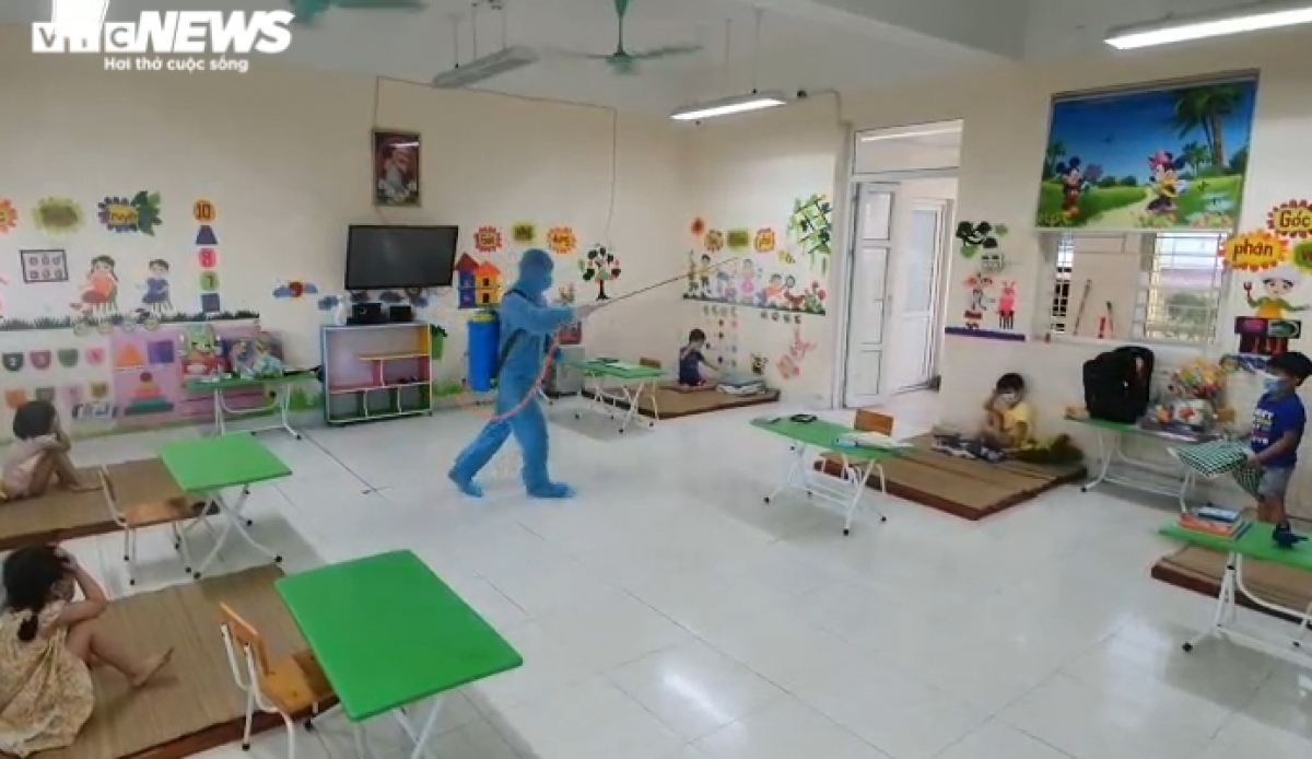 Tại điểm cách ly Trường mầm non Lê Lợi (TP Bắc Giang, tỉnh Bắc Giang) hiện có 34 bé, trong đó có 24 bé 5 tuổi và 10 bé 2 tuổi thuộc các Trường Mầm non Lê Lợi và Doremi, tất cả đều là F1 và được cách ly tại đây 21 ngày |
