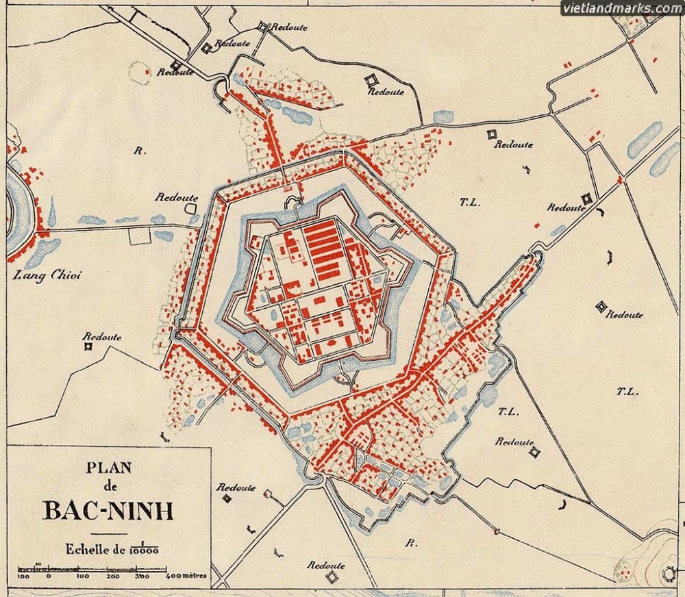 Thành cổ Bắc Ninh. Bản đồ do người Pháp vẽ |