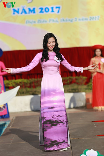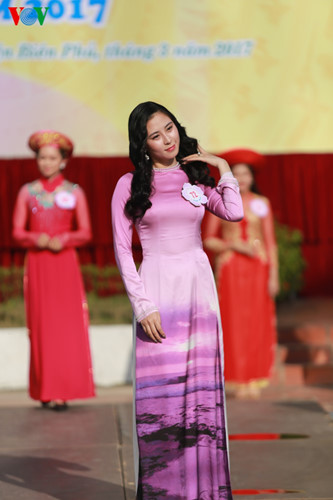 | Người đẹp Hoa Ban 2017 trong phần trình diễn trang phục áo dài tại vòng sơ khảo. |