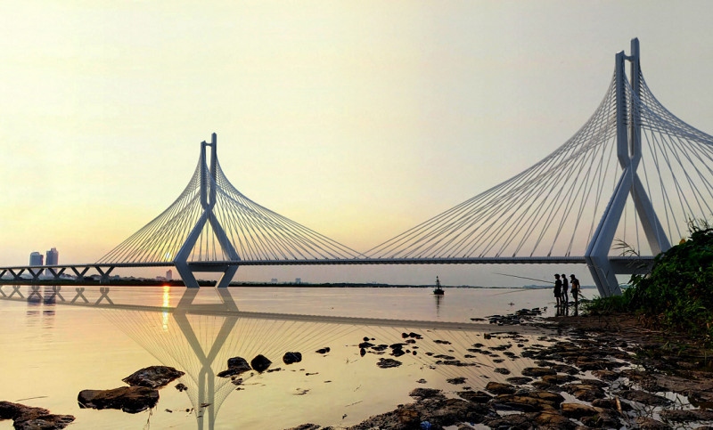Cầu Tứ Liên có chiều dài 2,9km, cầu chính dài 1km, quy mô mặt cắt ngang theo quy hoạch bảo đảm 6 làn xe cơ giới.
