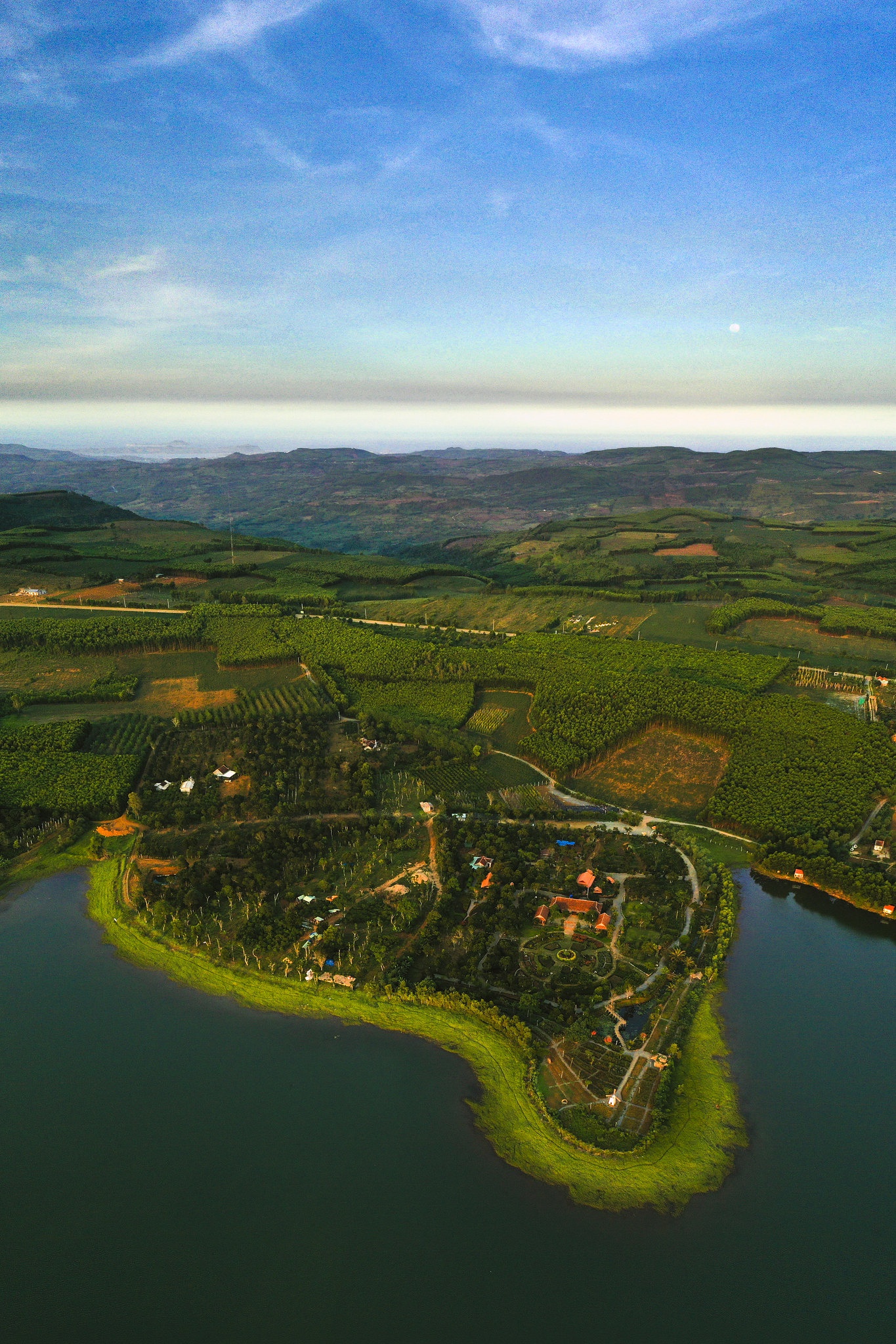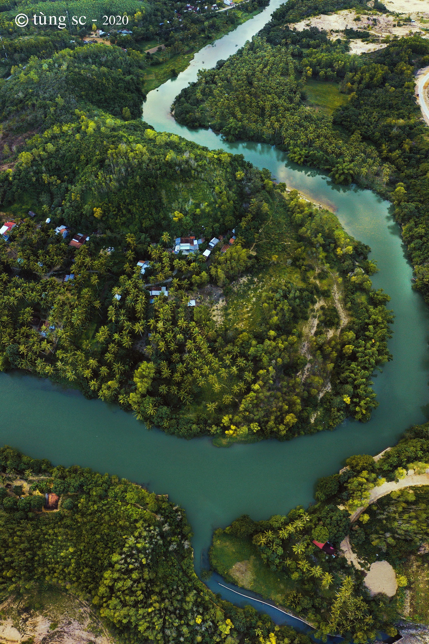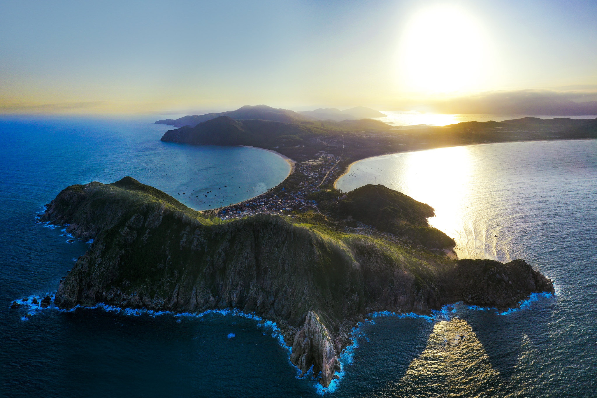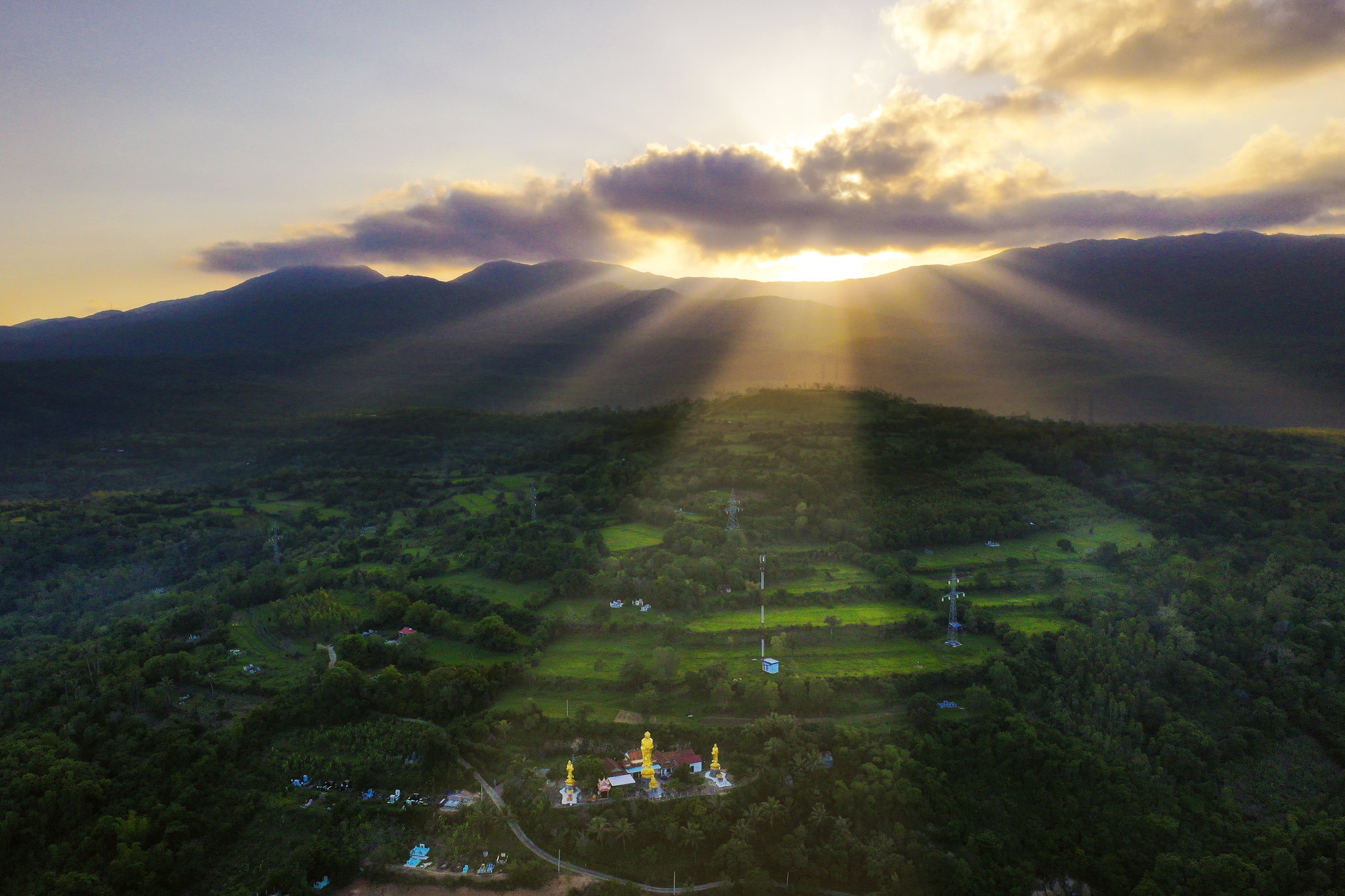 Ngắm Phú Yên từ trên cao, ta mới cảm hết nét quyến rũ của miền biển xanh, kì vĩ của những ghềnh đá, thơ mộng của mây trời, sông nước. Bức tranh thiên nhiên được phủ gam màu xanh chủ đạo, với nhiều sắc thái khác nhau. Đó là làn nước ngọc bích ở vùng Vũng Me, Từ Nham (Sông Cầu), sắc xanh mướt mắt của những hàng cây trải dài bất tận ở Long Vân (Sơn Hòa)... Tô điểm cho bức tranh thiên nhiên thanh bình là mảng vàng rực rỡ của Sơn Nguyên, triền cát Từ Nham lấp lánh ánh nắng... Ngoài ra, đó còn là là vẻ sừng sững, uy nghi của ngọn hải đăng Mũi Điện, cổ kính của chùa Từ Nham, Xuân Lâm... Đặc biệt hơn cả là khoảnh khắc ánh sáng chiếu vào chính diện ngôi chùa, tạo ra vầng hào quang tuyệt đẹp. Bên cạnh cảnh sắc hữu tình, ống kính flycam cũng ghi lại nhịp sống con người xứ biển.