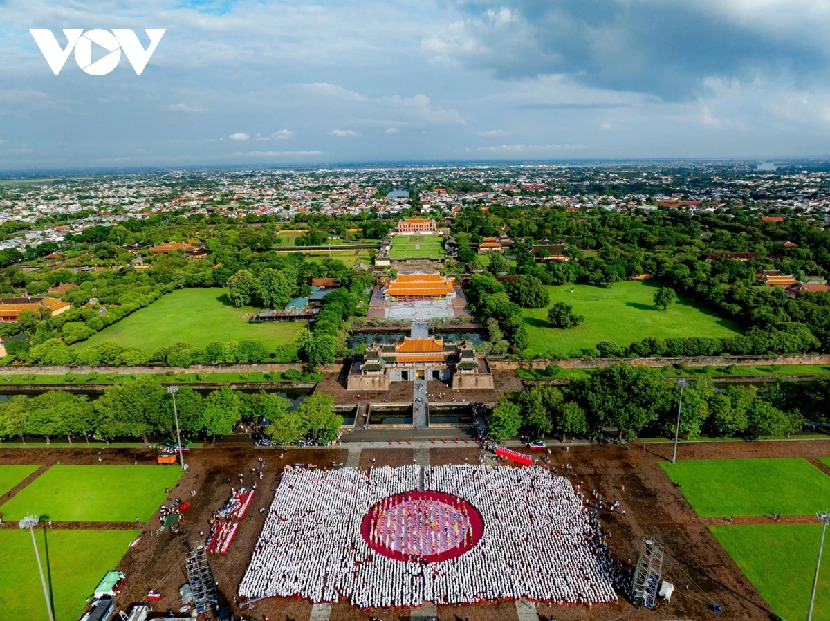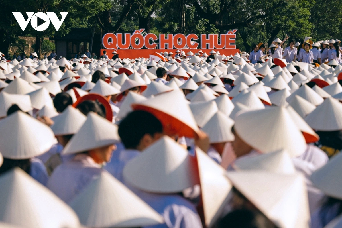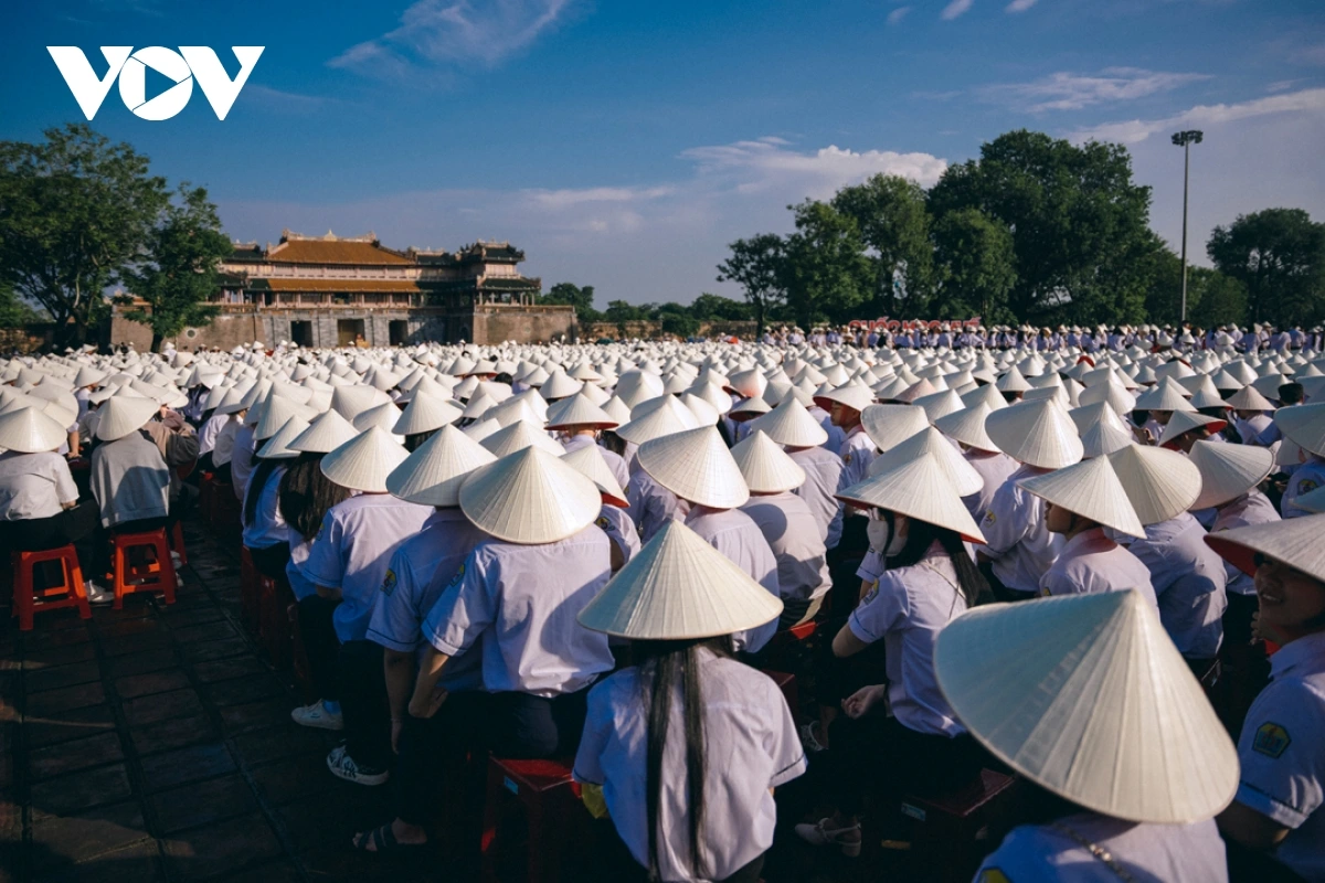 | Những chiếc nón lá của Huế đã phủ kín quảng trường Ngọ Môn. Ảnh: Trường Bùi |