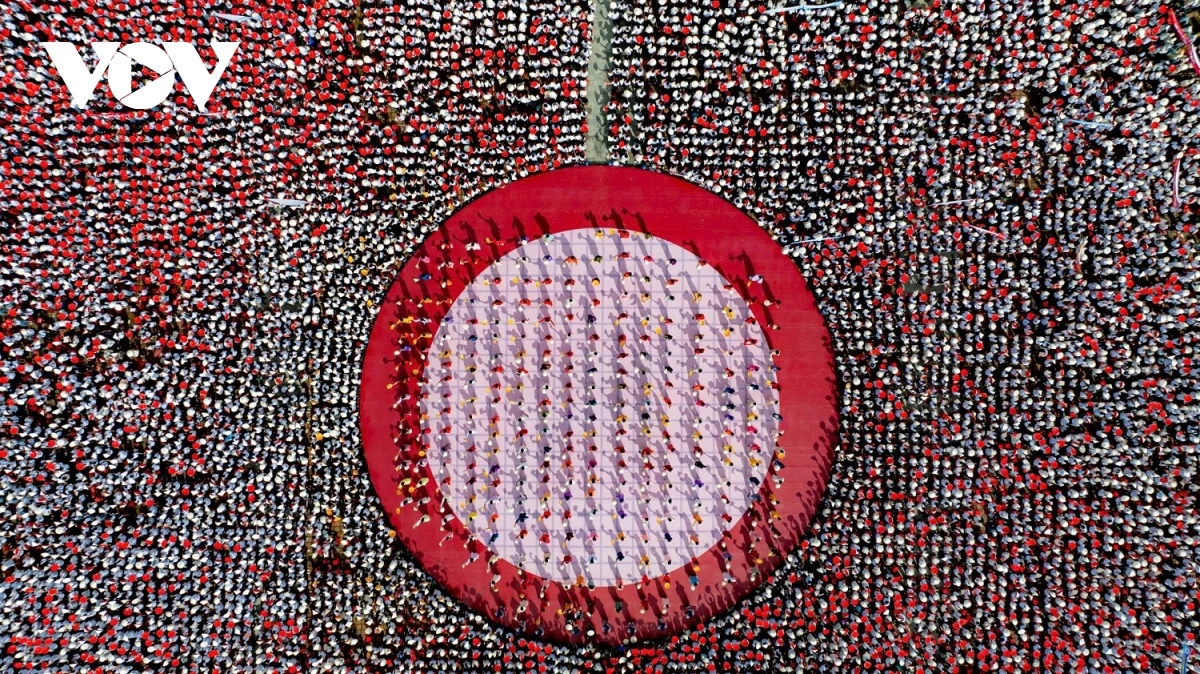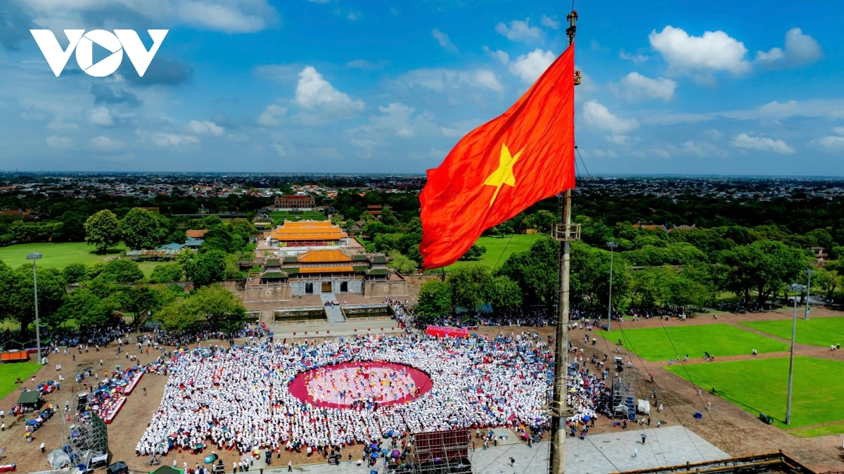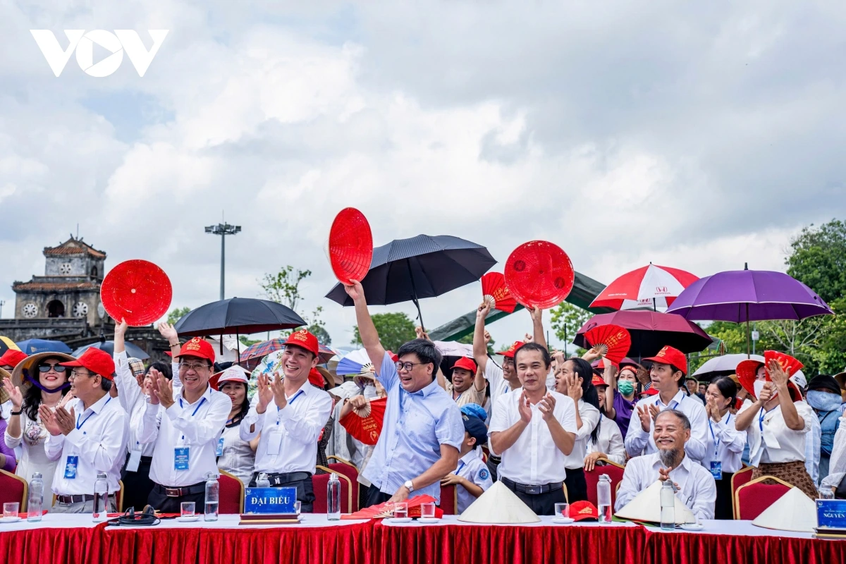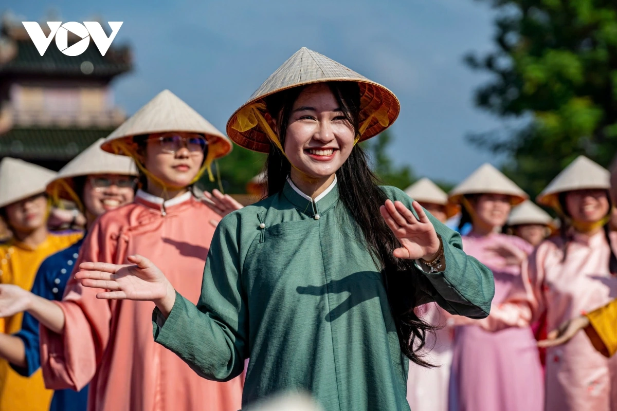 | Những chiếc nón lá của Huế đã phủ kín quảng trường Ngọ Môn. Ảnh: Trường Bùi |
