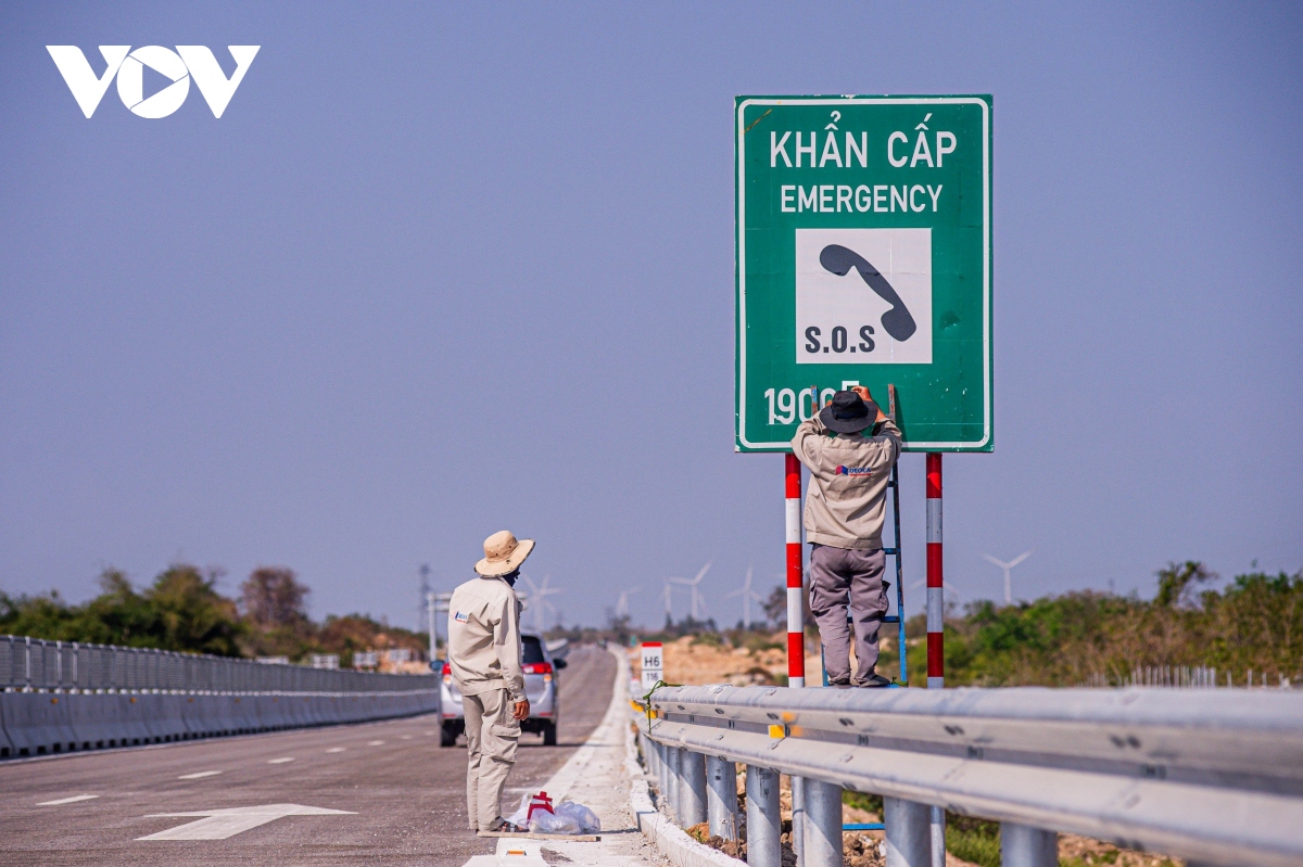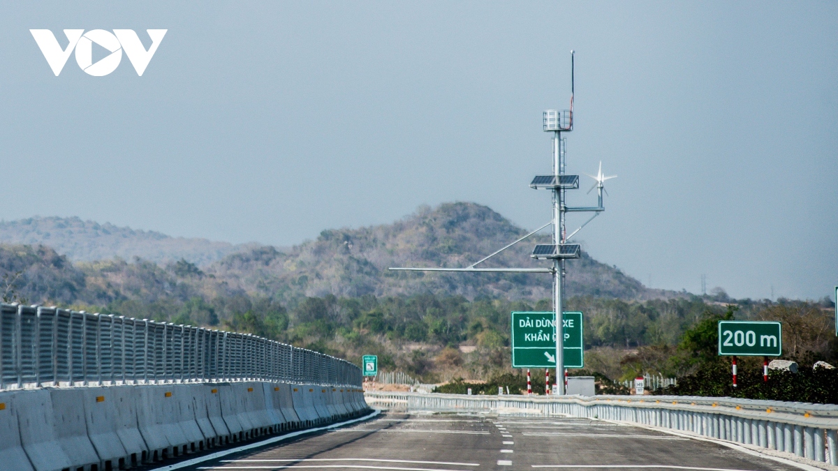 Dọc đường, các cụm thiết bị ITS và camera được vận hành bằng các tấm pin năng lượng mặt trời đã lắp đặt.Hệ thống giao thông thông minh ITS với nhiều camera quan sát và nhìn rõ các vật thể ở khoảng cách 1km, được ghi hình liên tục 24/24h trong mọi điều kiện thời tiết. Thiết bị hoa gió có tác dụng đo tốc độ và hướng gió được lắp dọc hai bên trục cao tốc. |