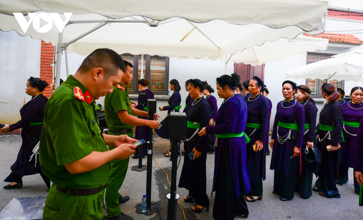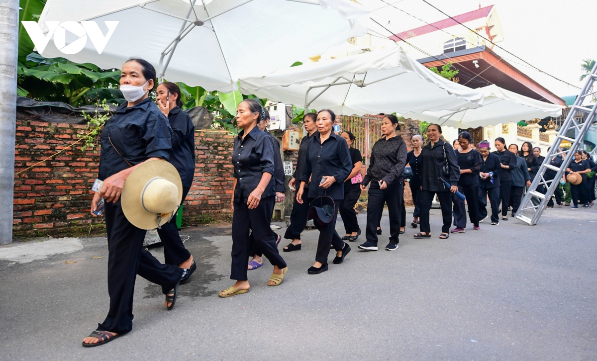 Từ sáng sớm 26/7, người dân đã xếp hàng vào viếng Tổng Bí thư Nguyễn Phú Trọng tại quê hương ông là Nhà văn hóa thôn Lại Đà, xã Đông Hội, huyện Đông Anh- Hà Nội. Người dân xếp 2 hàng được thanh niên tình nguyện hướng dẫn đi vào cửa an ninh quét mã QR sau đó đi vào bên trong làng.