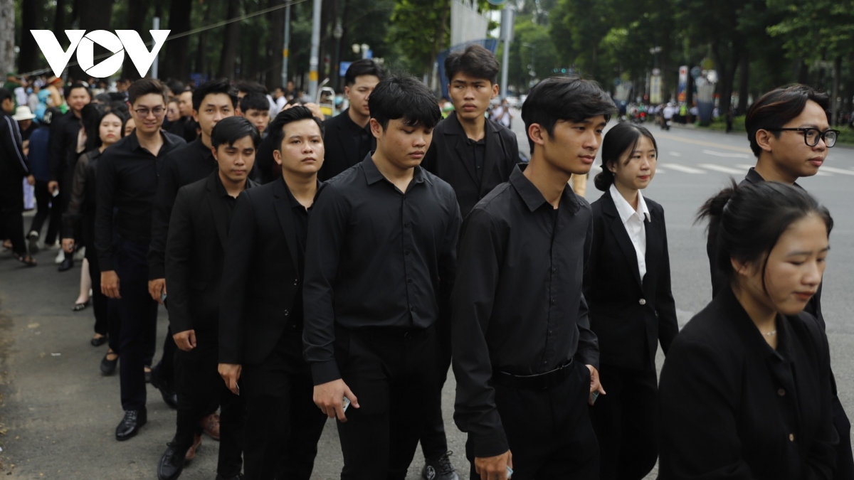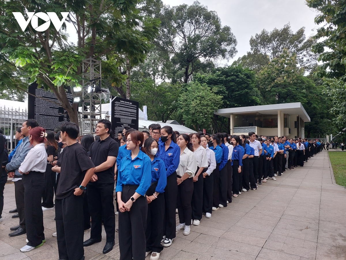 Rất đông bạn trẻ xếp hàng viếng Tổng Bí thư tại TP.HCM