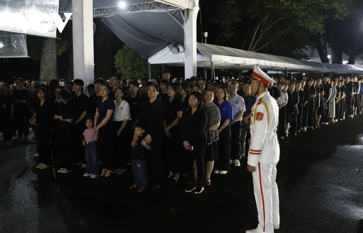 Phóng viên Tỷ Huỳnh/VOV- TP.HCM cho biết: Đêm 25/7, tại Hội trường Thống Nhất, TP.HCM, hàng người xếp hàng vào viếng Tổng Bí thư Nguyễn Phú Trọng vẫn nối dài. Ban tổ chức đã kéo dài thời gian viếng của ngày 25/7 đến 23h thay vì 22h như ban đầu. Người dân TP.HCM và các tỉnh lân cận, từ người già đến trẻ nhỏ đều đến với mong muốn được vào thắp nén hương cho Tổng Bí thư.