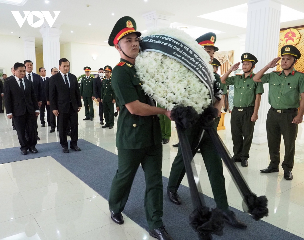 Thủ tướng Hun Manet ghi trong sổ tang: “Chính phủ Hoàng gia Campuchia xin chia buồn sâu sắc nhất đến Chính phủ và nhân dân Việt Nam cùng gia quyến Ngài Tổng Bí thư Ban Chấp hành Trung ương Đảng Cộng sản Việt Nam Nguyễn Phú Trọng. Ngài Tổng Bí thư Nguyễn Phú Trọng là một nhà lãnh đạo xuất sắc, người đã cống hiến cả cuộc đời cho sự nghiệp xây dựng đất nước phồn vinh, vì cuộc sống ấm no, hạnh phúc của nhân dân Việt Nam, cũng như trong việc củng cố quan hệ anh em gần gũi, sâu sắc giữa nước Cộng hòa xã hội chủ nghĩa Việt Nam và Vương quốc Campuchia”.