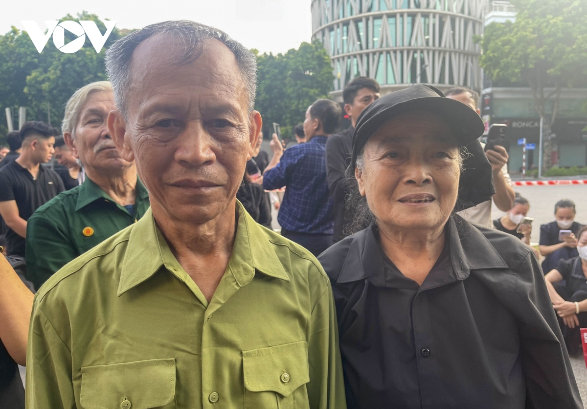 Theo ghi nhận của phóng viên Chung Thủy/VOV.VN, vợ chồng ông bà Nguyễn Văn Tiến và Hán Thị Phương, 75 tuổi (người Yên Bái) đã đi xe ô tô khách từ 2h sáng về Hà Nội để kịp giờ viếng Tổng Bí Thư Nguyễn Phú Trọng. Tâm trạng xúc động, bà Phương cho biết, 4h sáng, vợ chồng ông bà đã có mặt tại phố Hàn Thuyên và xếp hàng đợi giờ vào viếng. Khi hay tin Tổng Bí thư mất, vợ chồng bà vô cùng xúc động, tiếc thương vị lãnh tụ của nước, của dân. Bằng mọi giá vợ chồng ông phải về Hà Nội để viếng Tổng Bí thư và tiễn đưa ông chặng đường cuối về với đất mẹ.