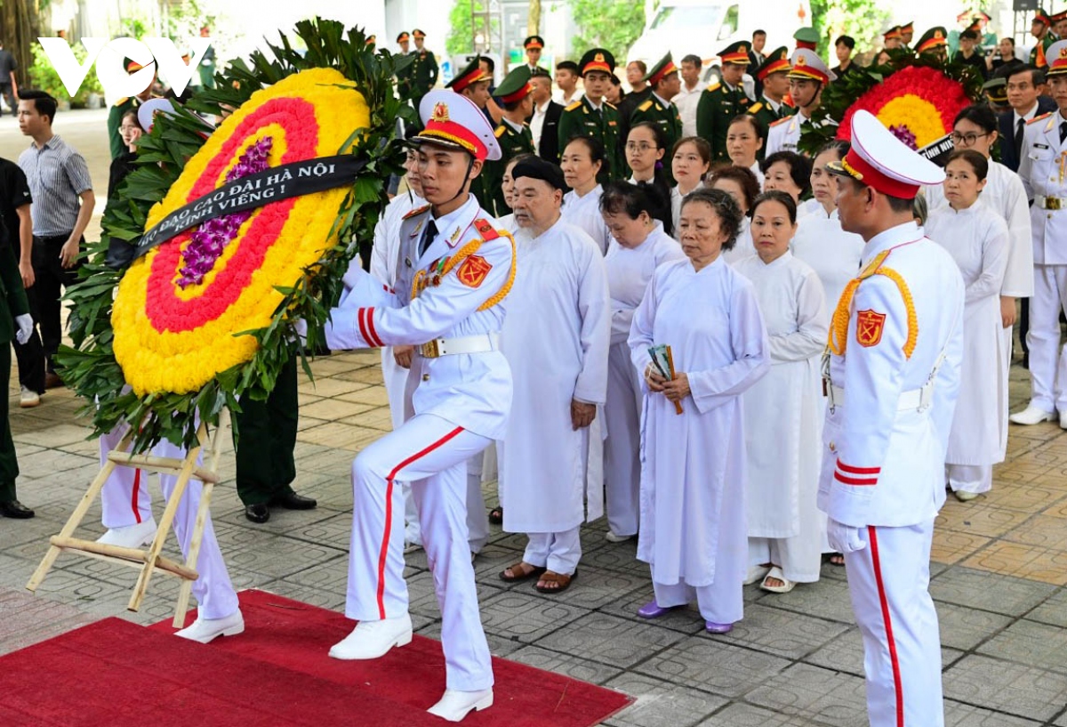 Tại Nhà tang lễ Quốc gia số 5 Trần Thánh Tông- Hà Nội, dòng người vào viếng trong trật tự. Lễ viếng Tổng Bí thư Nguyễn Phú Trọng kéo dài đến 13 giờ trưa nay (ngày 26/7/2024). Lễ truy điệu Tổng Bí thư Nguyễn Phú Trọng được tổ chức lúc 13 giờ ngày 26/7/2024 tại Nhà tang lễ Quốc gia số 5 Trần Thánh Tông, thành phố Hà Nội.